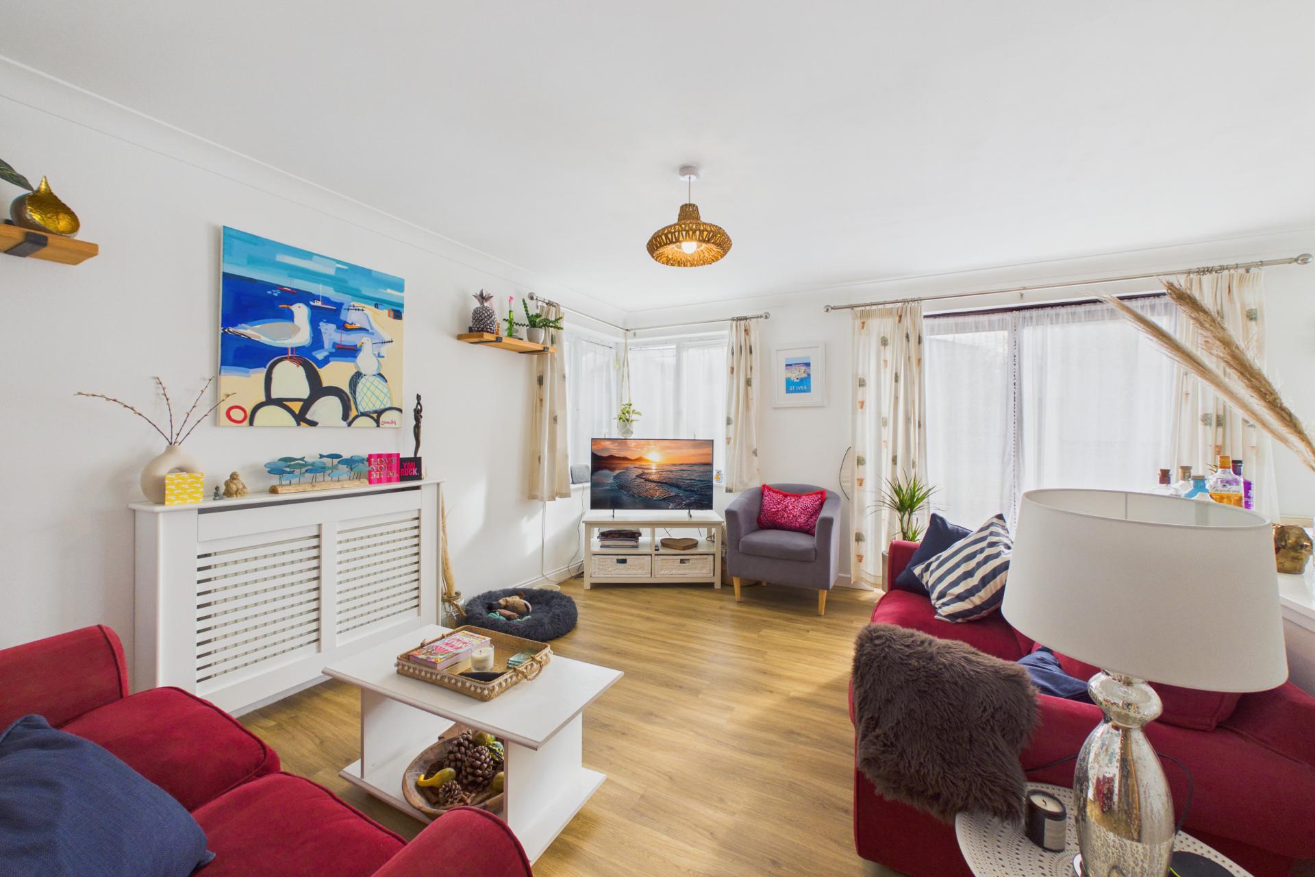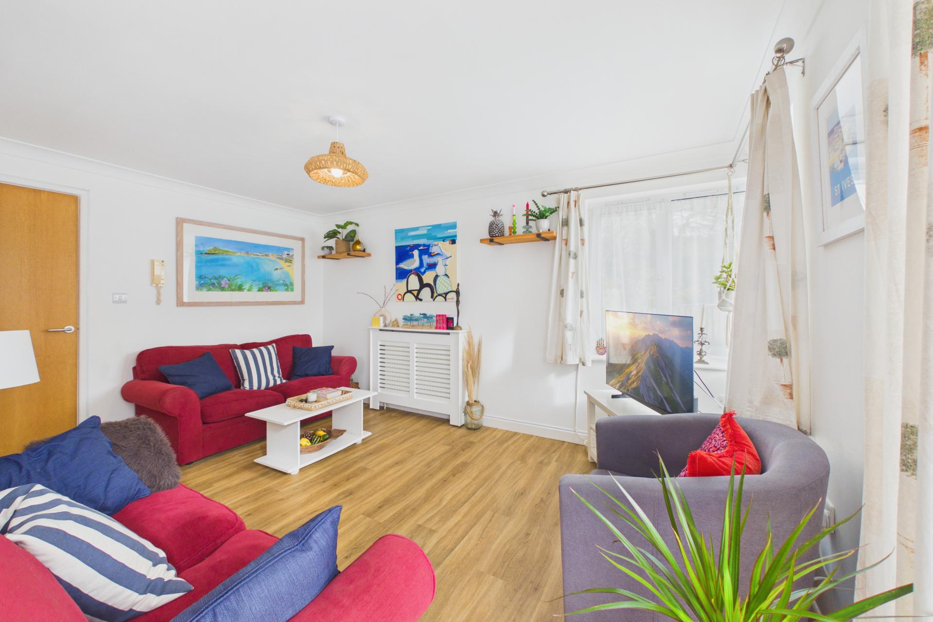 A super, spacious and light two double bedroom ground floor apartment located in one of the most well thought of developments constructed within Carbis Bay within the last 20 years. Offering gas central heating, double glazing, designated off road parking and enclosed garden with extra front patio. Ideal as a first time buy, downsize, or equally a investment property. Accommodation comprises large entrance hallway, two double bedrooms, bathroom, separate cloakroom, open plan living room / dining room with good sized kitchen. Being sold with no further chain, this property is highly recommended viewing. fir material information please use QR code in photos