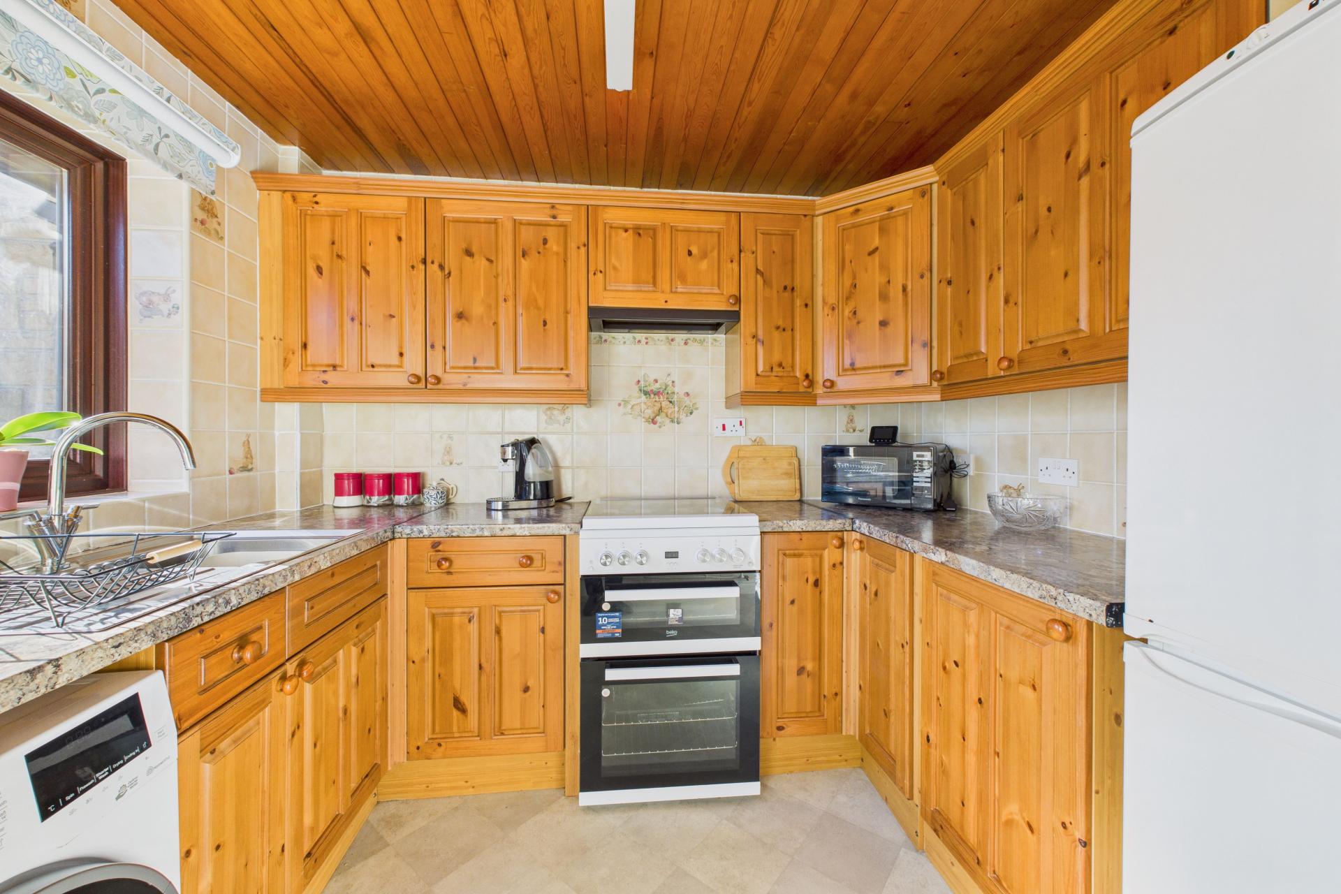 Good sized kitchen with an extensive range of eye and base level units with worktop surfaces over, stainless steel sink unit and drainer with taps over, plumbing and space for washing machine, UPVC double glazed window and door leading out to the rear garden, space for gas cooker with extractor fan over, space for fridge freezer, wood panel ceiling, radiator