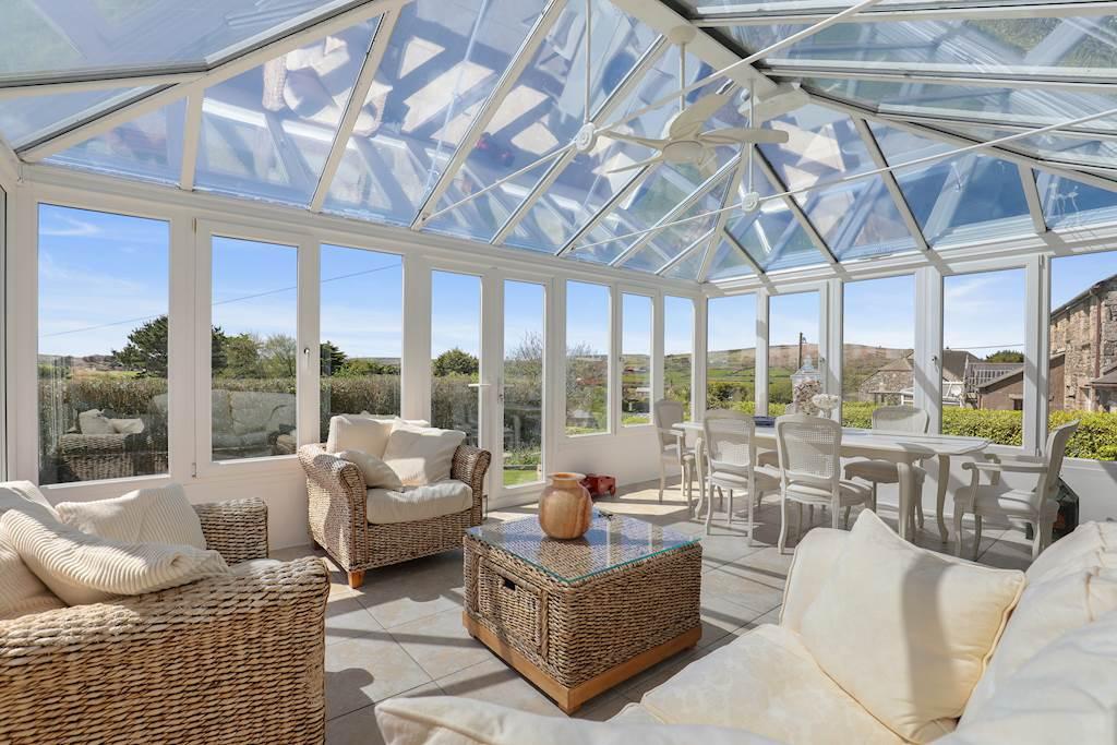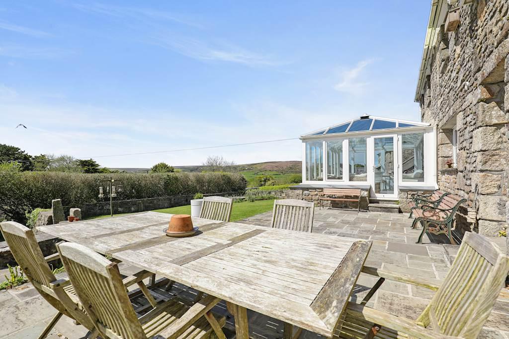 To the rear of the property, making the most of the open aspect and fabulous views across the surrounding countryside, the beautiful well tended gardens are large and mainly laid to lawn bordered by mature plants and shrubs and Cornish hedging.