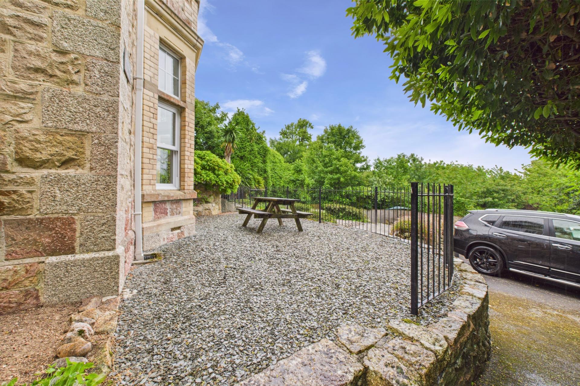 To the front of the apartment is a private terrace area with plenty of space for dining table and chairs, in turn steps lead down to an extremely well maintained communal garden with lawn area along with various seating area. There is a path to the side of the property which leads to a storage room where each apartment has a secure storage cage, ideal for storing surf boards, bicycles etc. plus communal use dryer There is a designated parking space and this particular property has a covered and private bin store