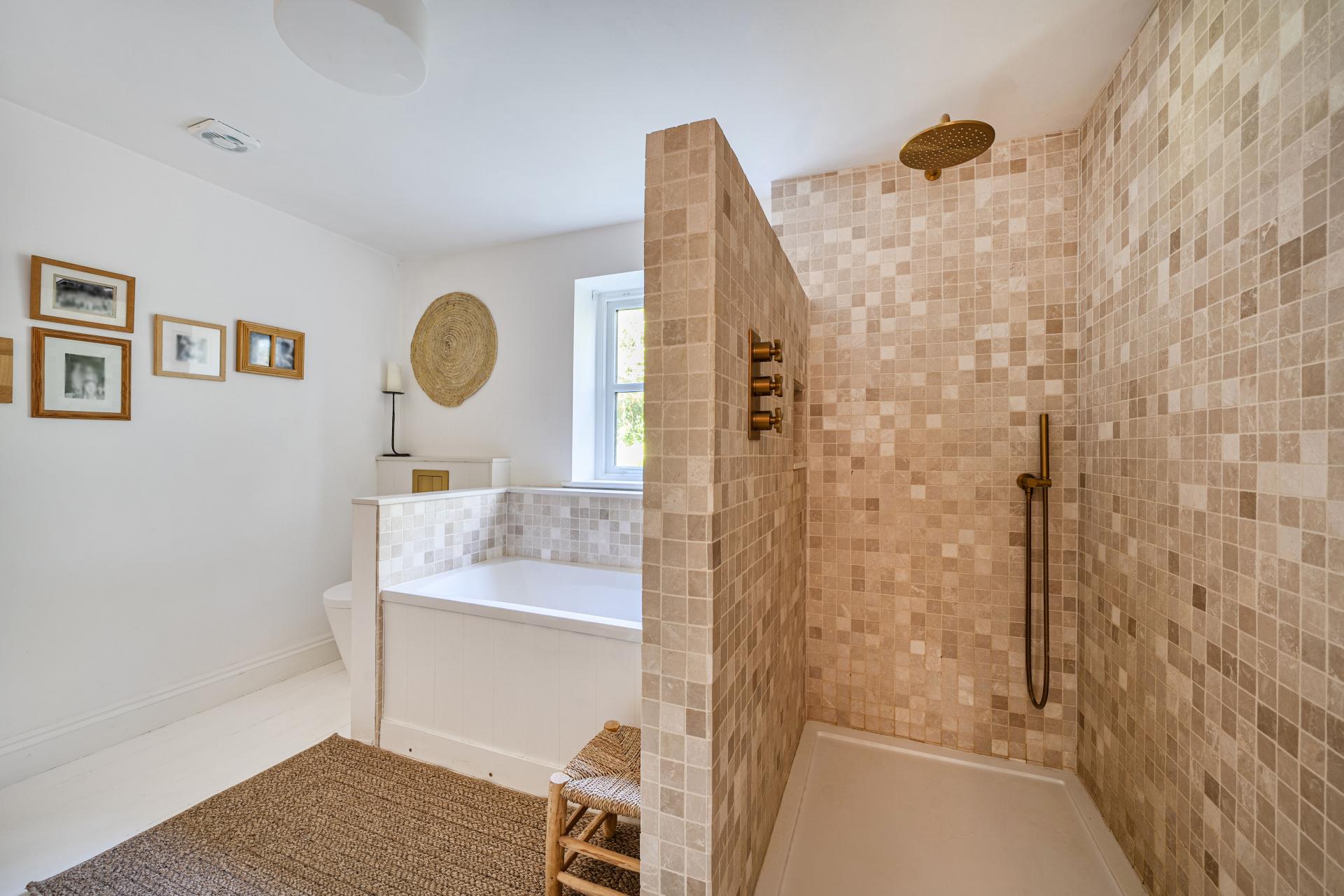 Up onto the first floor there are two double bedrooms along with a third smaller bedroom and large modern family bathroom with walk in shower, bath and WC. There are super rural views from the two double bedrooms.