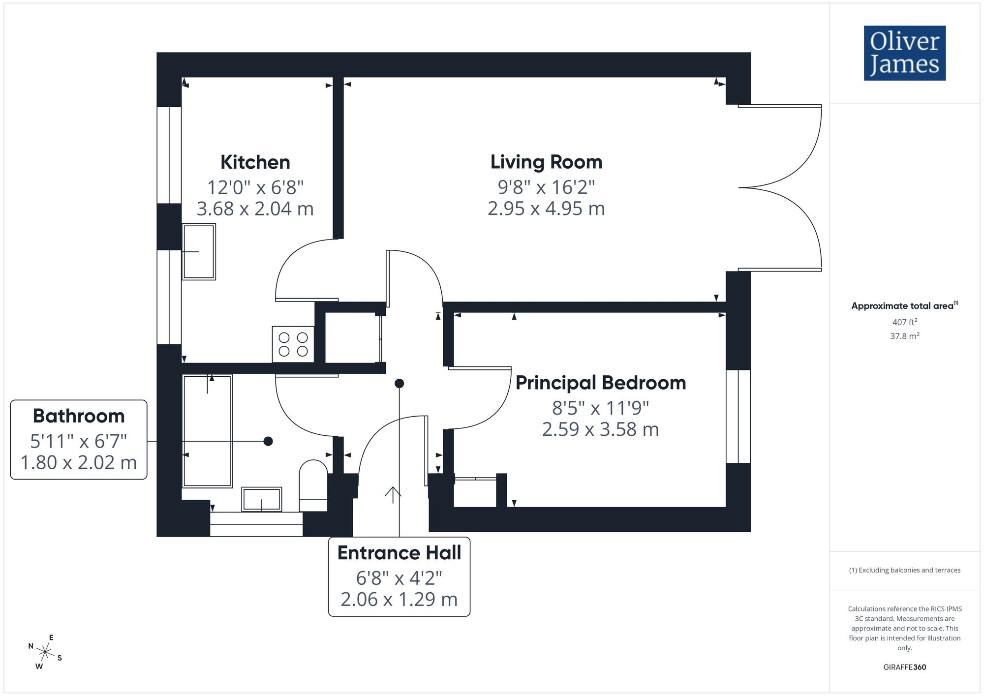 - The Gross Internal Floor Area is Approximately 388 sq/ft / 36 sq meters
