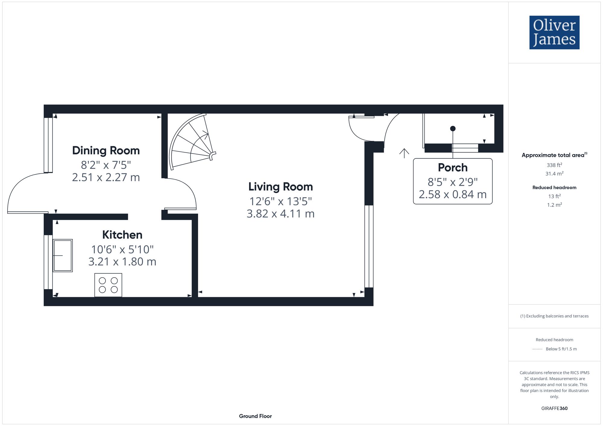 - The Gross Internal Floor Area is approximately 664 sq/ft / 61.7sq meters.