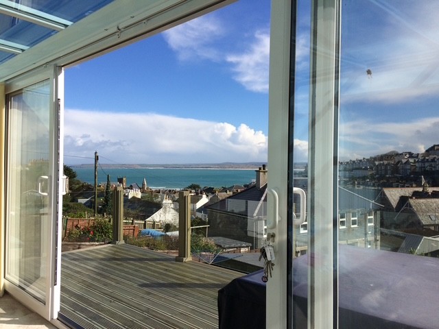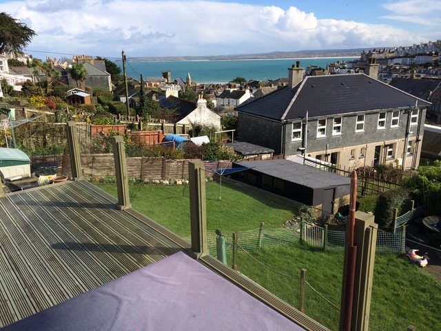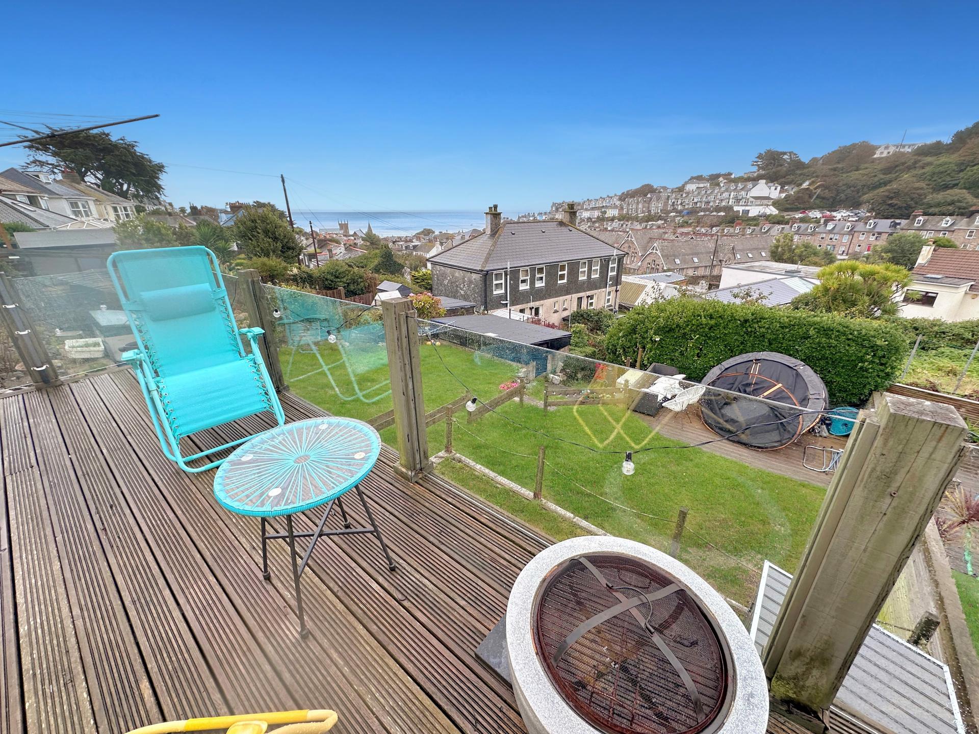 Accessed via some steps and directly from the conservatory is a large decked balcony with glazed inserts offering super sea and coastal views.