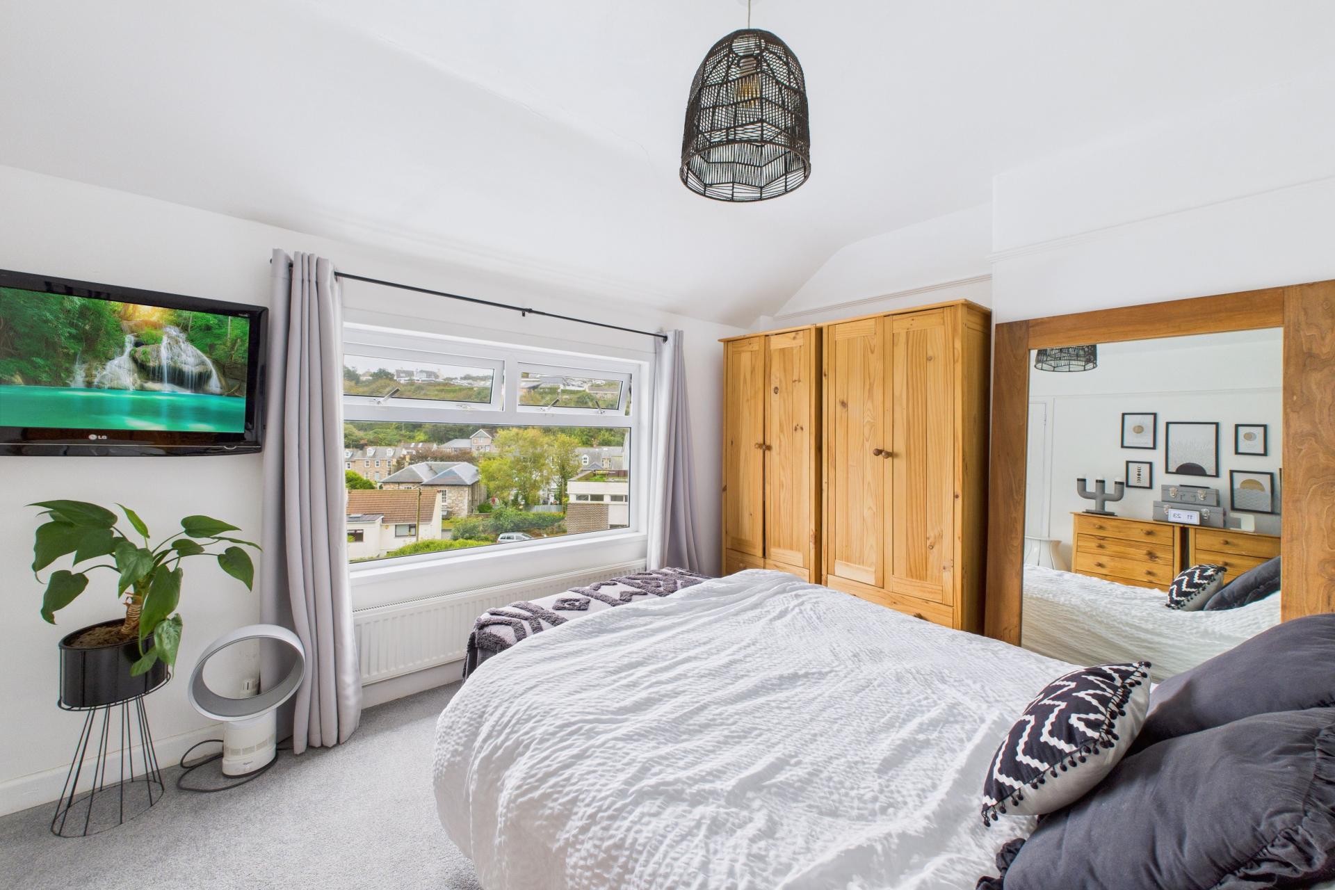 Good sized double with UPVC double glazed window to the rear offering the same super sea and coastal views, radiator, power points, space for wall mounted TV