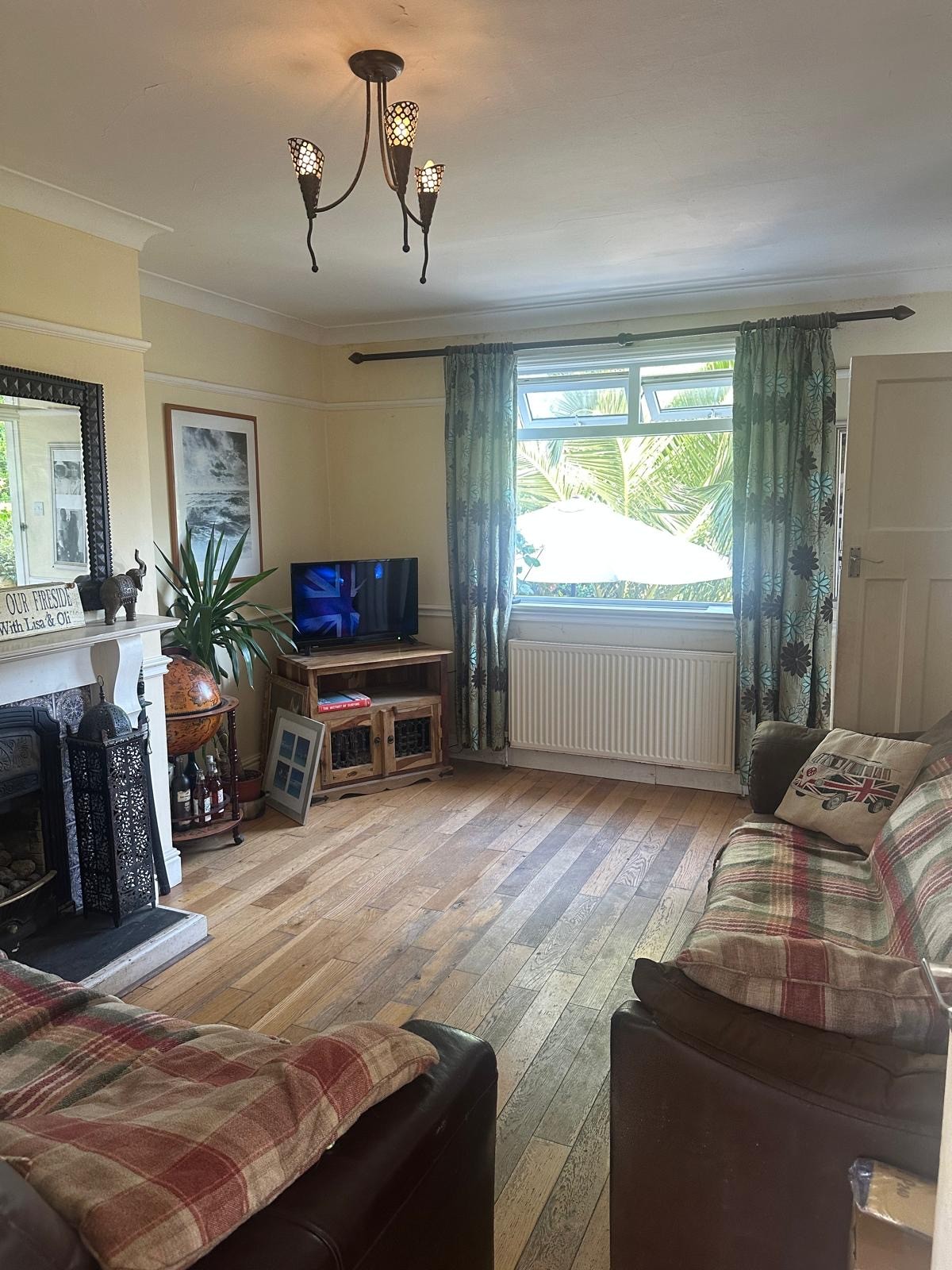 Wood flooring, fire with gas fire living flame effect fire inset, TV point, power points, radiator, door to