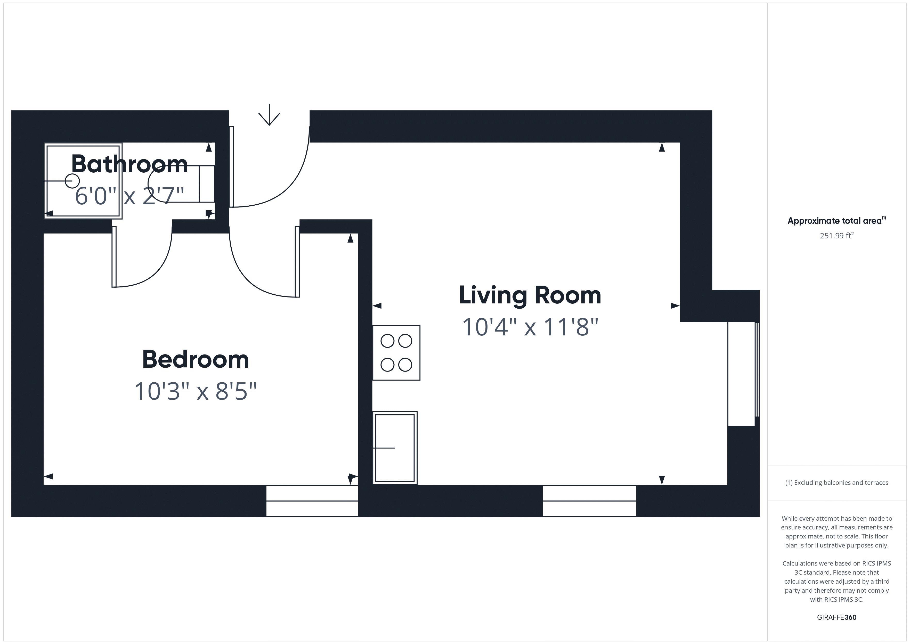 The flat measures 251.99 sqft and is located above a commercial premises so please check your finances before offering