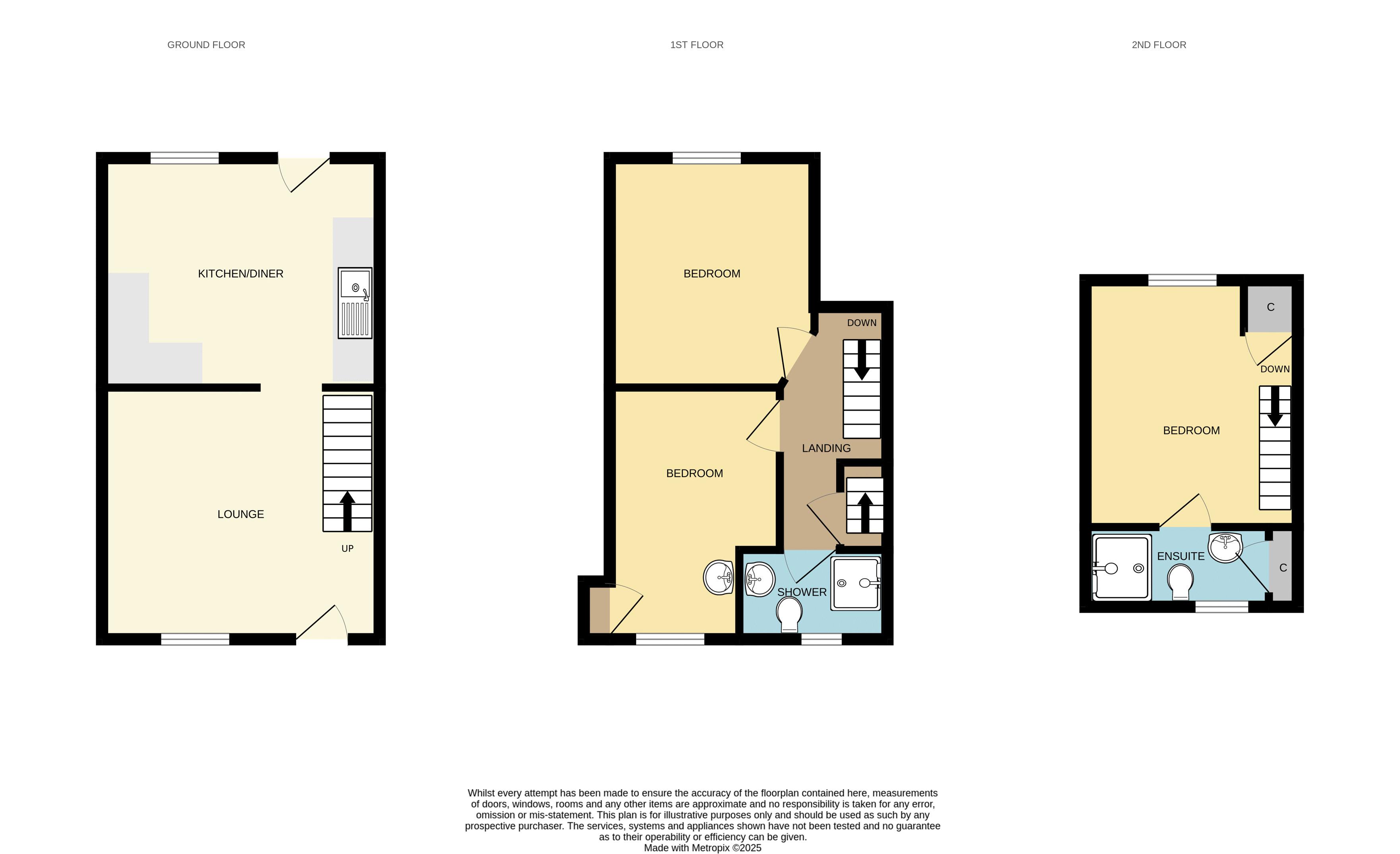 Doors to two bedrooms, shower room and door leading up to the 2nd floor
