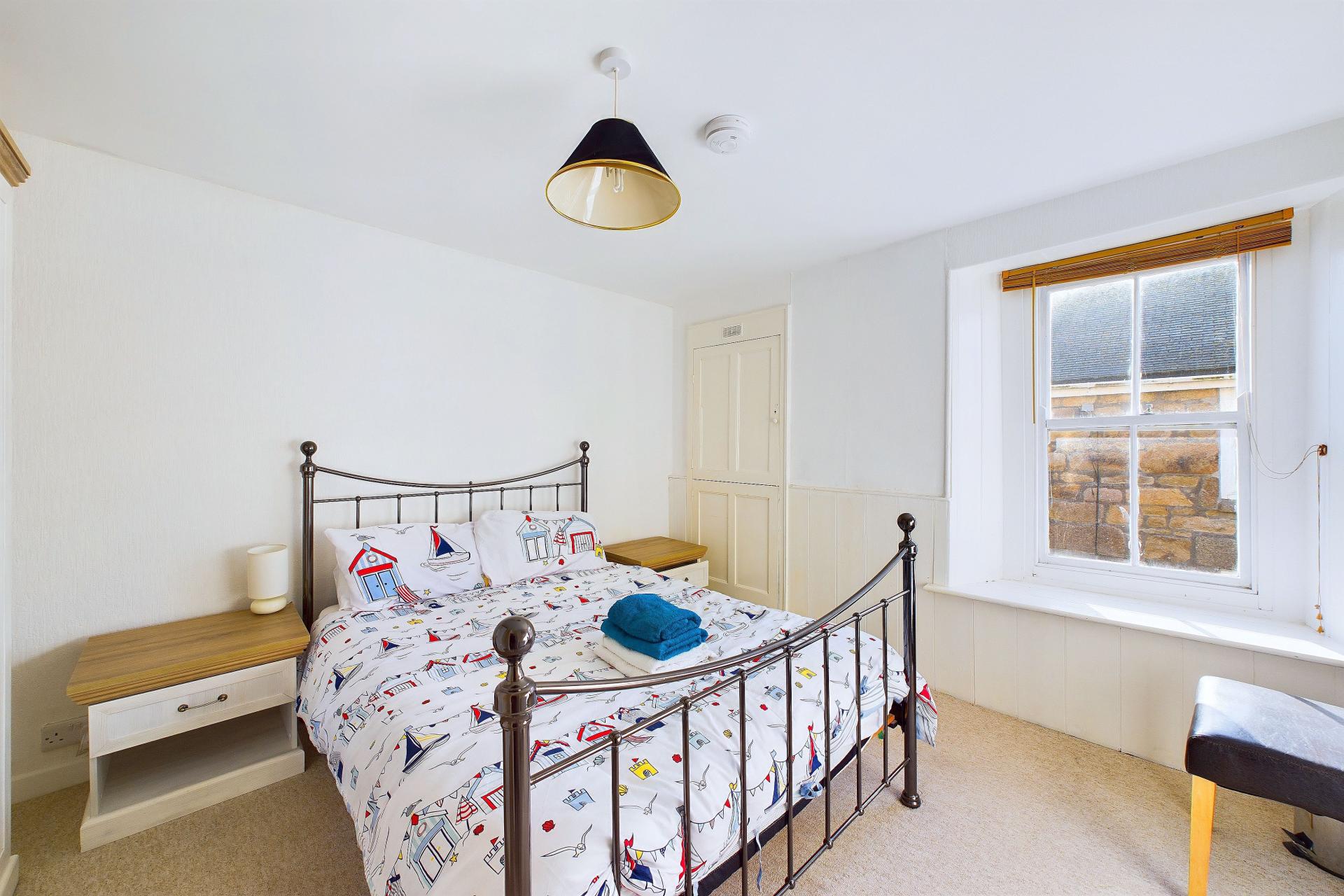 Another good double room with pitched eaves and dormer window to the front with far reaching views over St Ives rooftops to the sea, power points, radiator