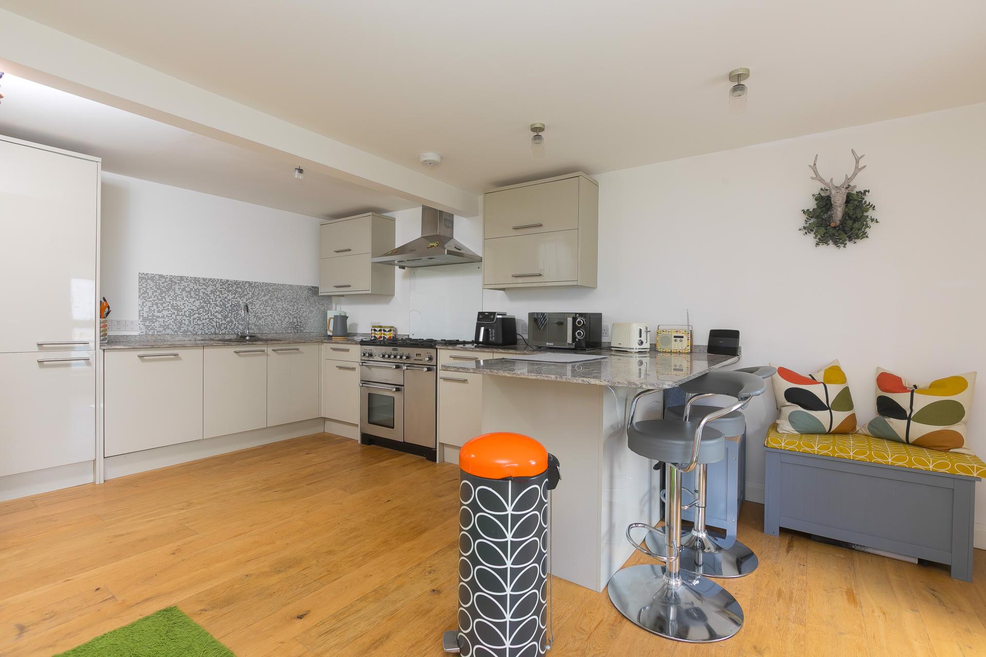 Welcome to this exceptionally well-presented and spacious three-bedroom modern home, a hidden gem that surprises with its impressive interior and the outstanding views gained from within. Laid out over three thoughtfully designed floors, the property seamlessly combines contemporary living with the stunning views. Upon entering, you'll be greeted by a light-filled interior that boasts ample space for for both relaxation and entertaining, with a large open plan kitchen / diner and generously sized living room, making this property perfect for either modern family living or equally a top class holiday let / 2nd home. Outside you'll find off road parking within the boundary of the property, a large external but dry storage area providing extra convenience and a real highlight being the spacious balcony with sea views and certainly big enough for ample alfresco furniture. With no restrictions on use, this property offers endless possibilities all within a pleasant walking distance to St Ives vibrant town centre and the beaches. For material information please use QR code in the photos