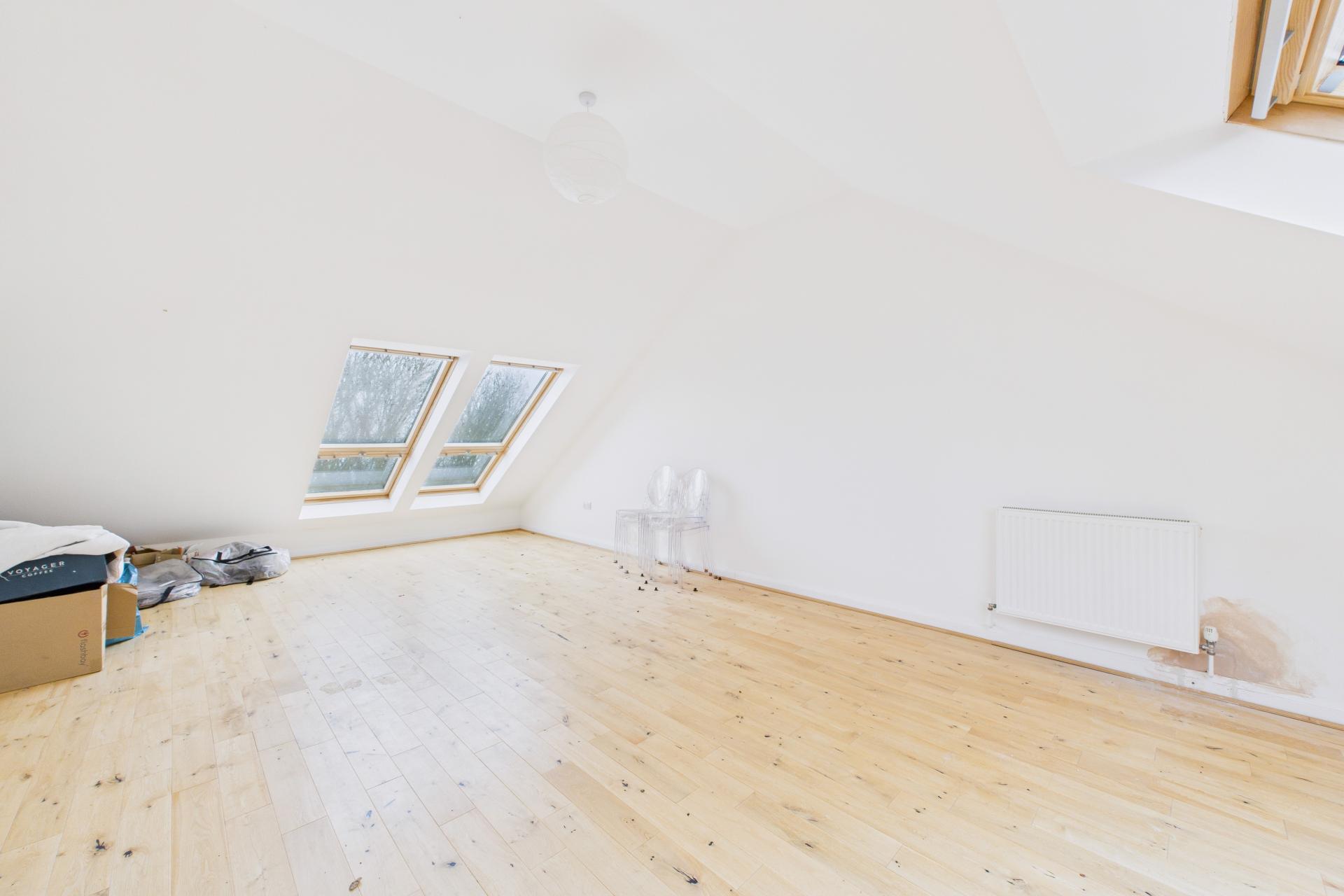 Super room, excellent size, pitched ceiling, with wood flooring, two large skylight windows to the rear offering fine sea and coastal views with a further single large skylight window to the front, two radiators, ample power points