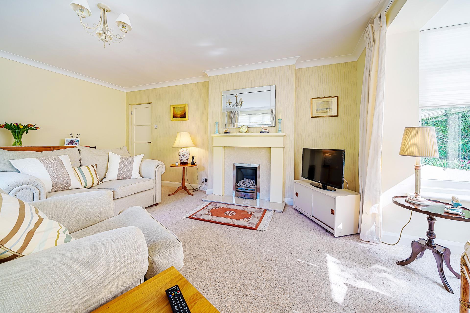 Wood framed double glazed window to the rear , radiator, square bay window to the side, fireplace with gas fire onset, power points, TV point
