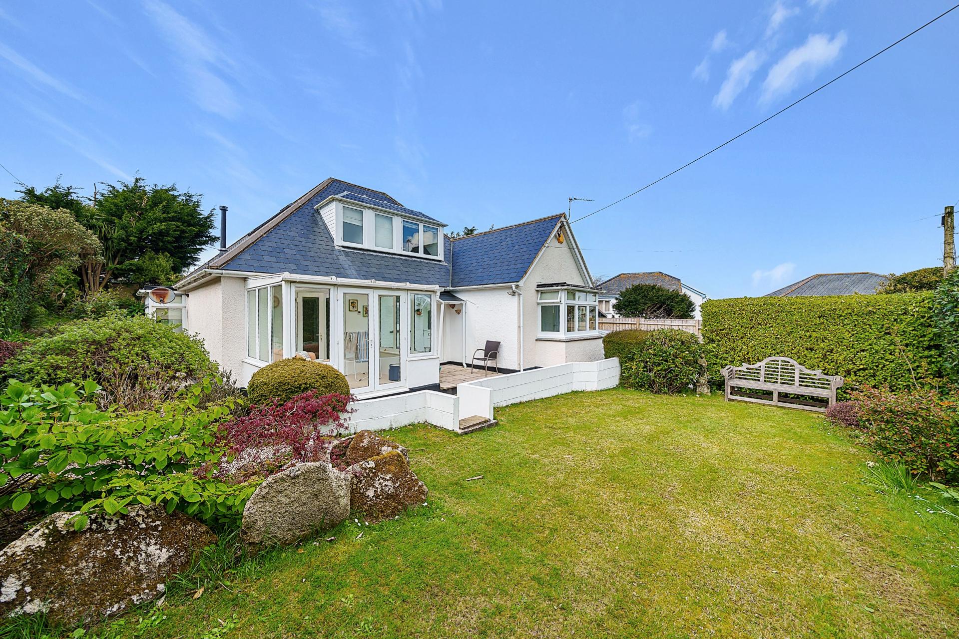 Situated along one of St Ives' most well thought of lanes, but still within walking distance to St Ives and the fantastic countryside and coastal walks within the area. This super 3 bedroom detached dormer bungalow with 2 large reception rooms offers immaculate, spacious and light accommodation internally mixed with extremely well tended surround gardens, ample off road driveway parking and large detached garage. With gas central heating throughout, double glazing and recently replaced slate roof, this stunning home must really be viewed to be fully appreciated. No chain. For material information please use QR code in the photos