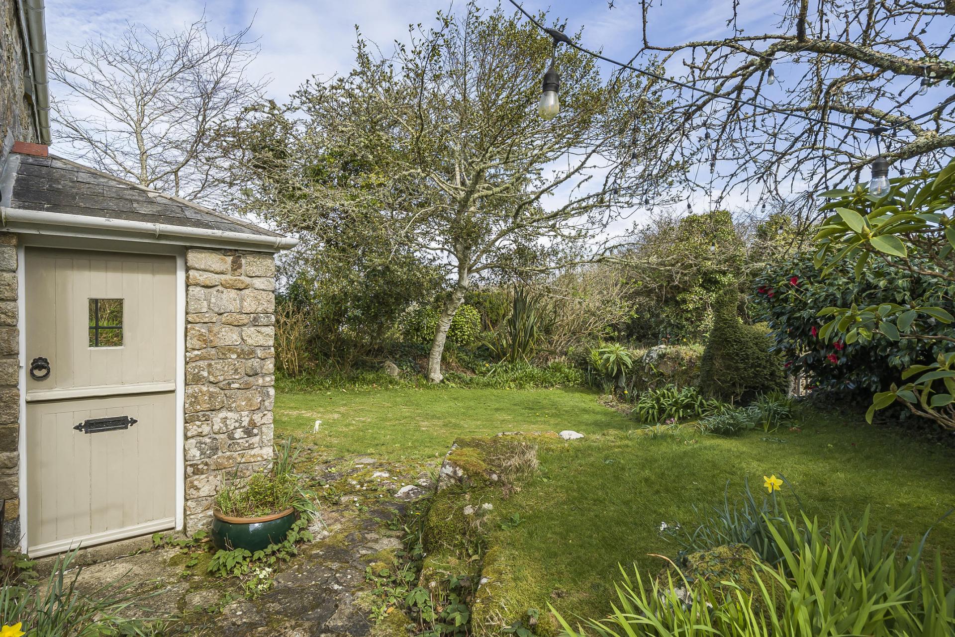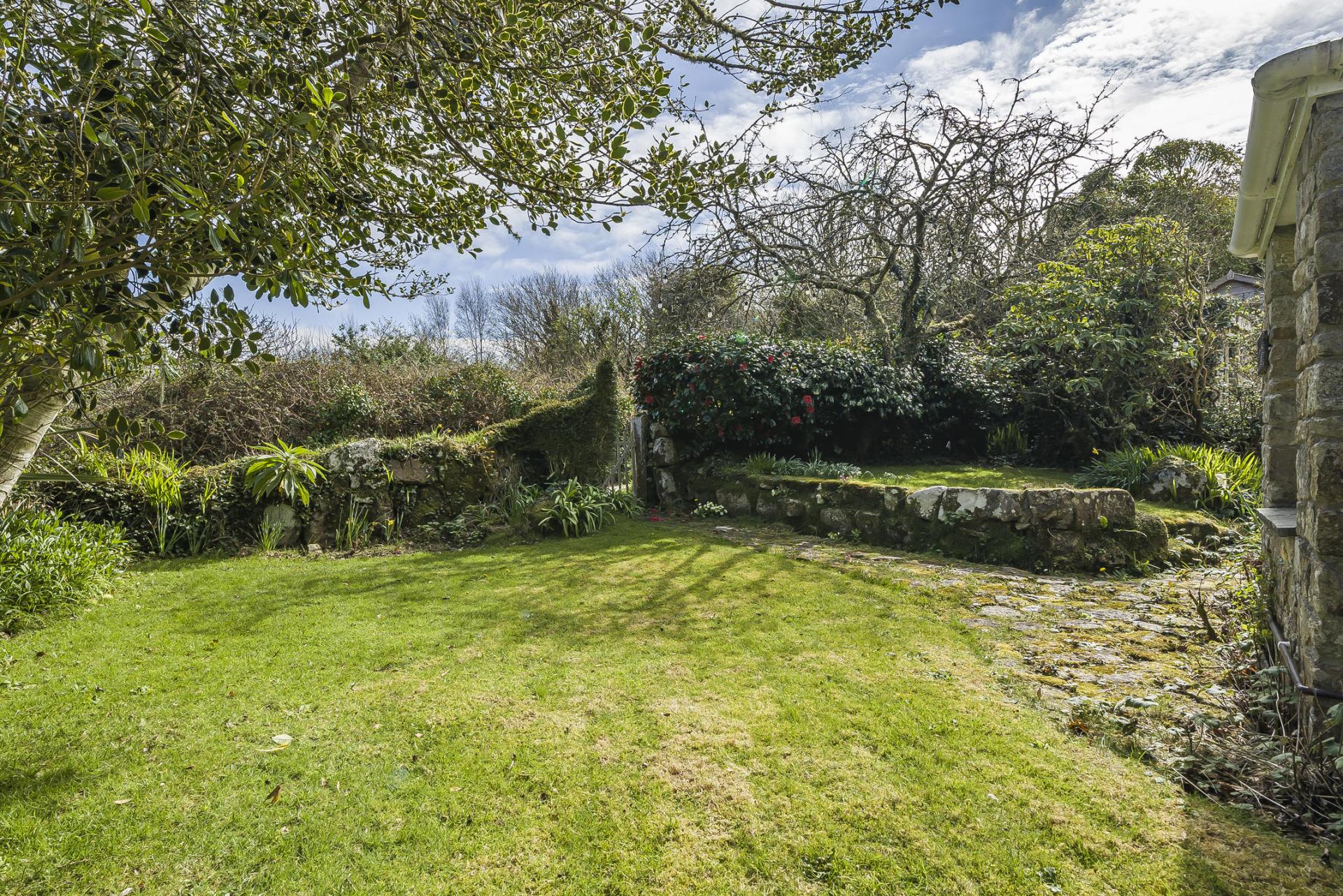 The gardens of this property are a real feature. To the front, the cottage boasts a private pretty cottage garden primarily laid to lawn with granite paved pathways bordered by a variety of well-established mature trees and shrubs beautifully framing the cottage. There is substantial side garden with a block built and timber store and set back from the road, a single parking space. There is room to make the parking area larger.