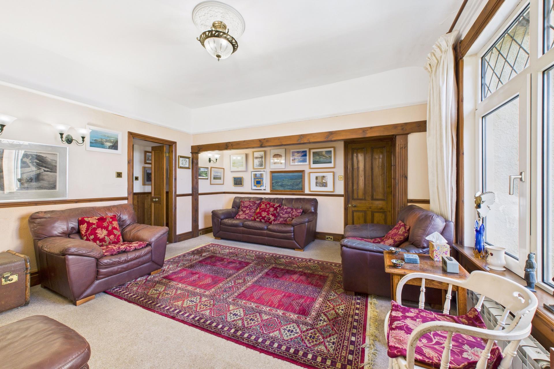 Great sized room having large double glazed window to the front with sea views, electric wall heater, ample power points, TV point, wood dado rail and fitted wall lights, double doors into inner hallway, arch through to dining area / office space