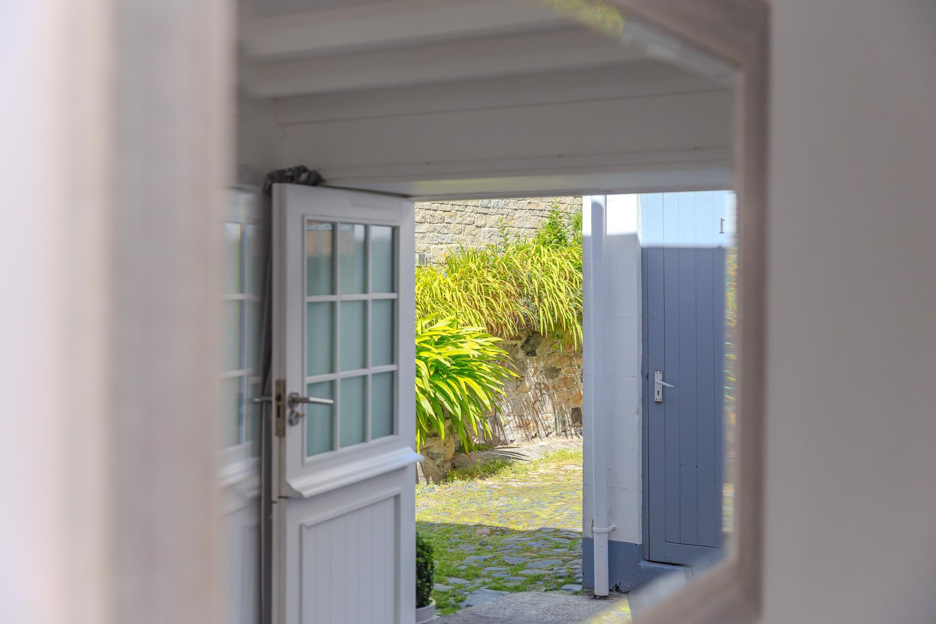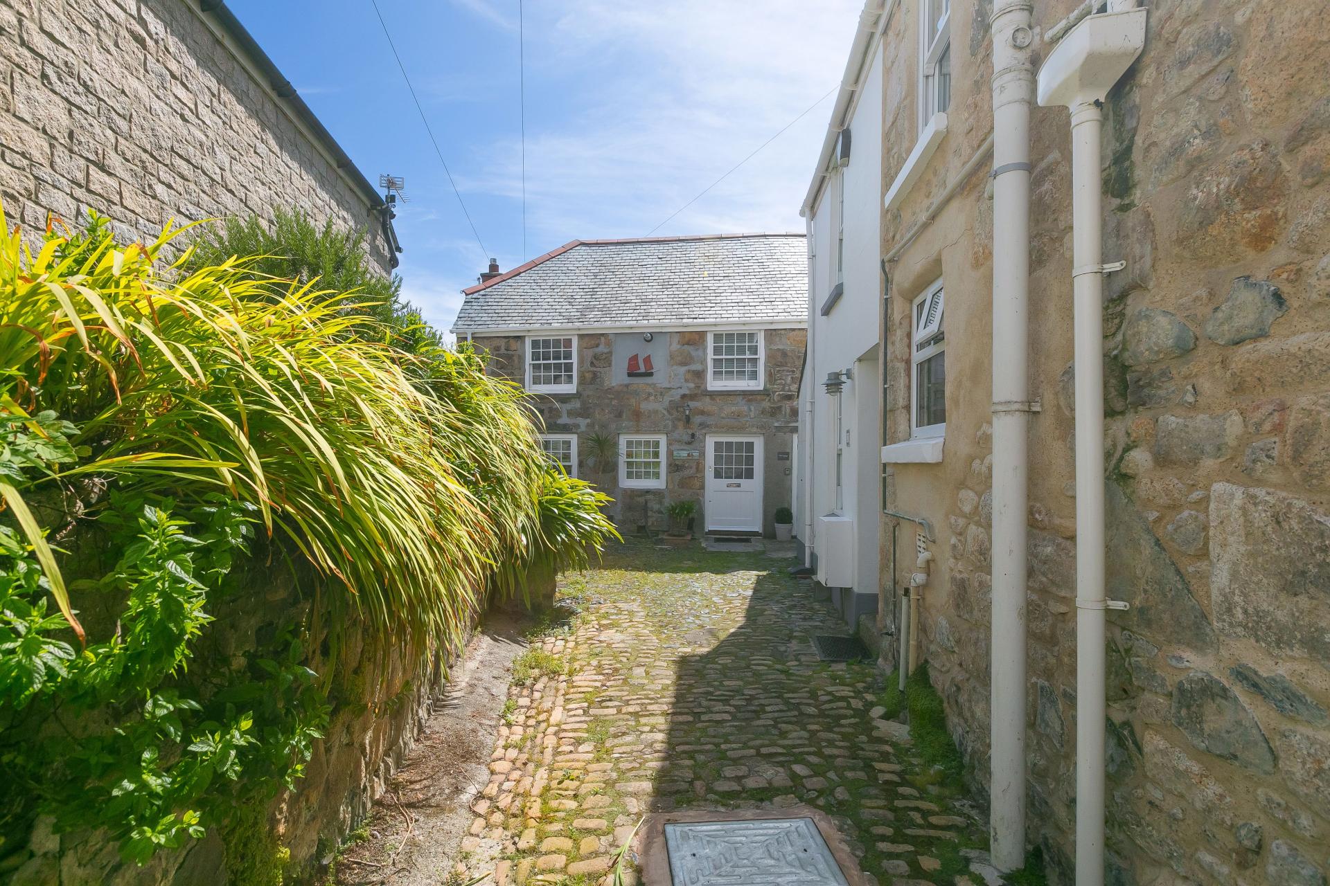 The cottage has pedestrian right of way over the sharded courtyard space
