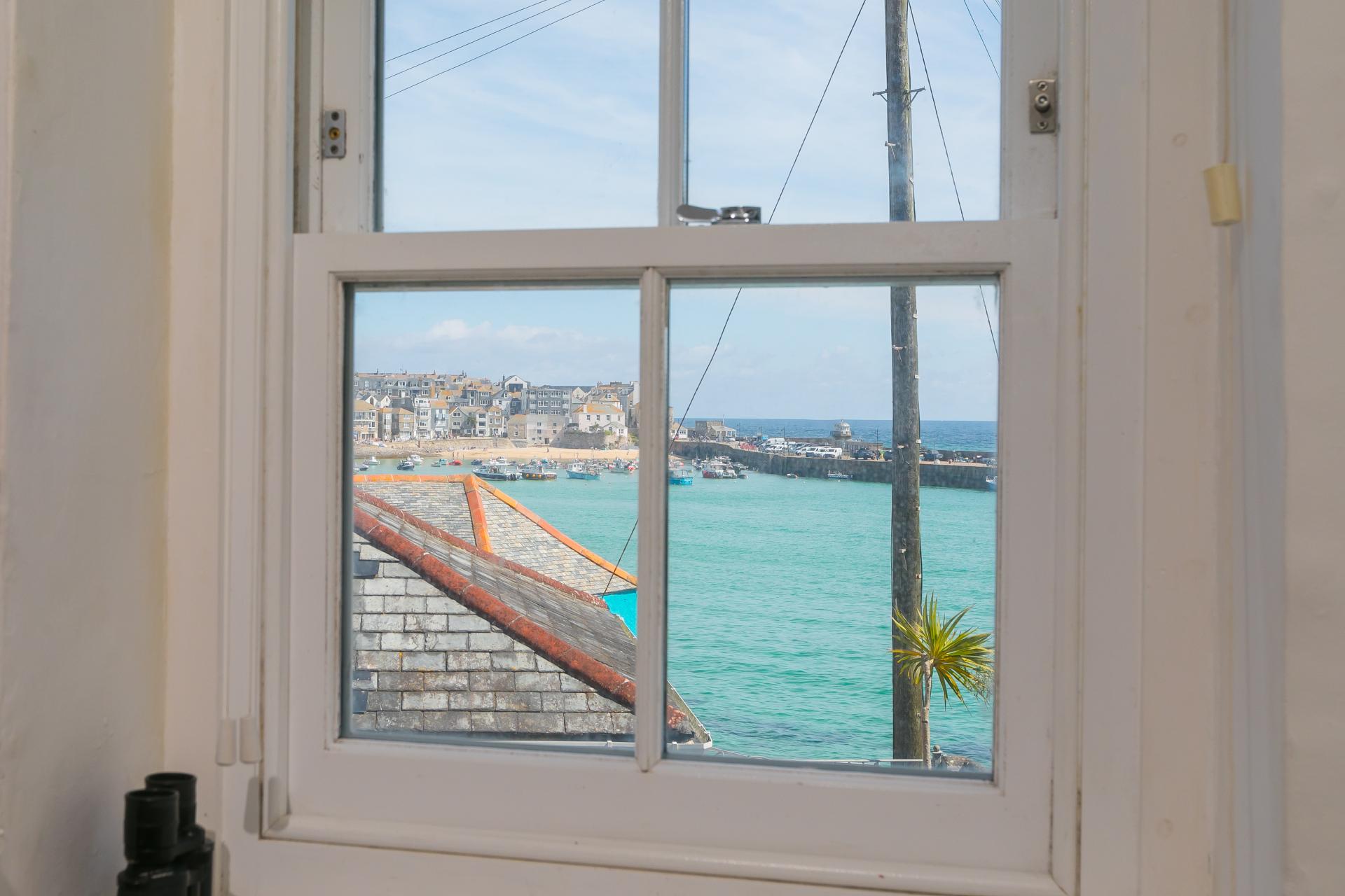 Landing with window to the side and sea views out to the harbour