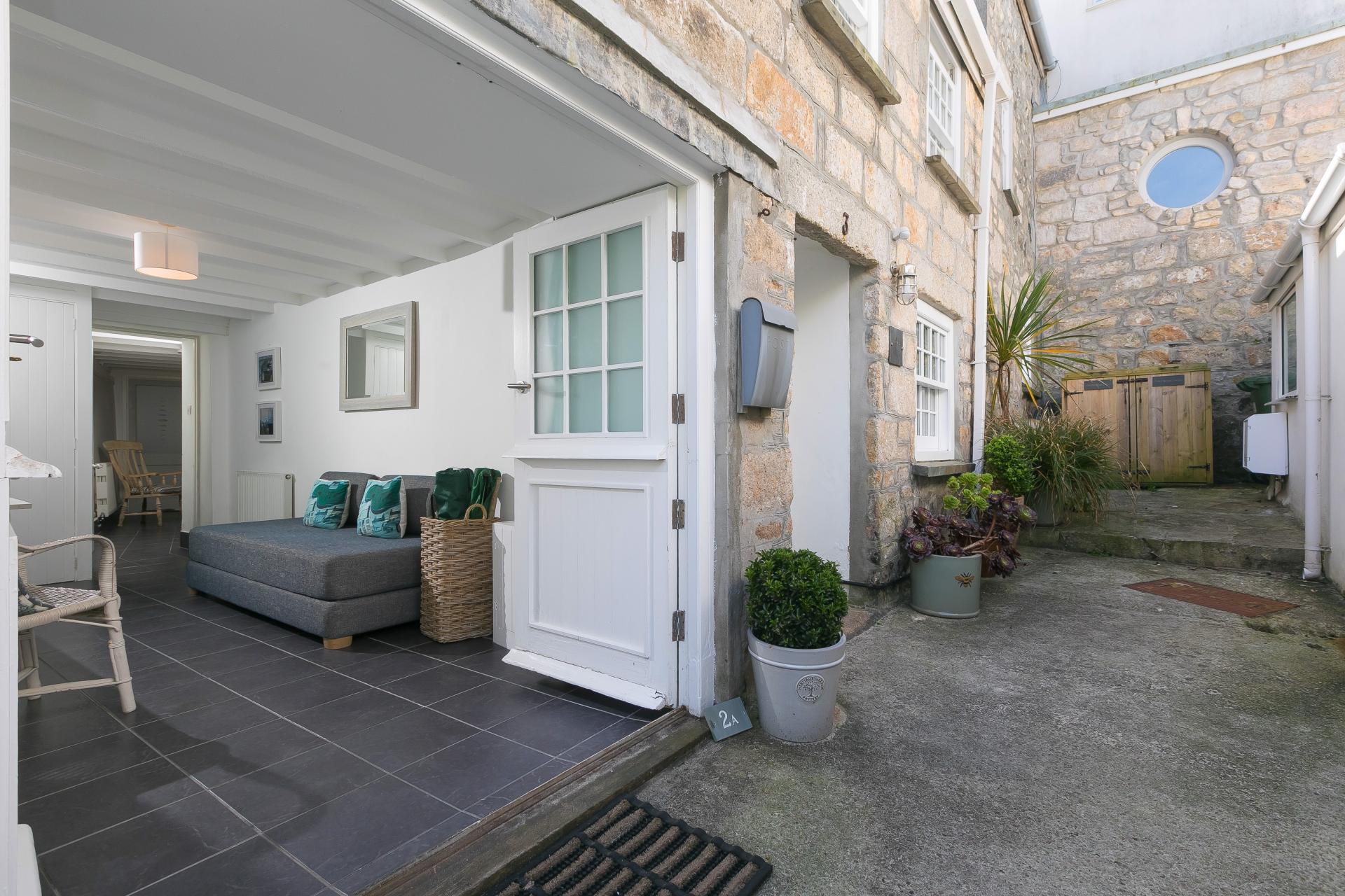 The property is located within a private gated courtyard, this courtyard is shared with access over to the cottage. Externally there is bin store and space for recycling.