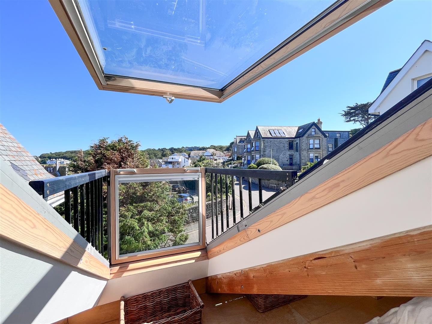 Flooded with natural light throughout, the home boasts stunning panoramic views across St Ives Bay, capturing the ever-changing colours of the sea and sky. From the comfort of your living room or upper-floor bedrooms, enjoy sweeping vistas that stretch across the harbour and beyond to Godrevy Lighthouse and even as far as Trevose Head on clear days.