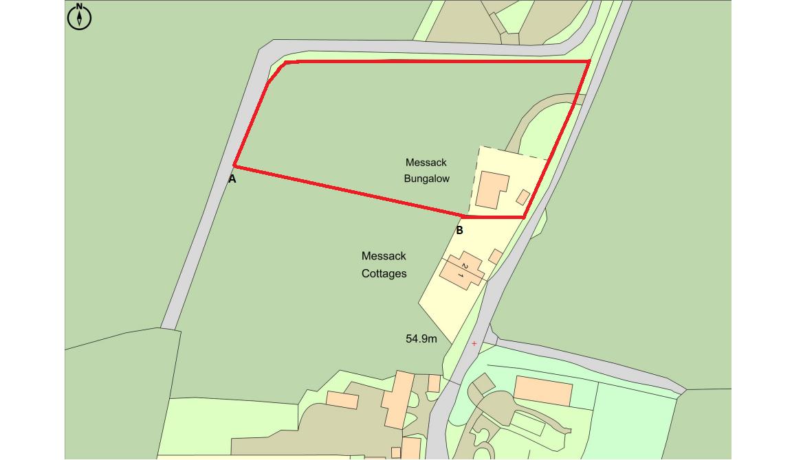 Outside - Messack Bungalow is approached from a quiet country lane that continues to the other properties on Messack Farm. A private entrance drive leads up to the property where there is hardstanding providing parking for several cars. The gardens and grounds are predominantly grass enclosed within natural hedge boundaries. The rear paddock is regularly mown by the vendor but is ideal for a small pony or hobby farming and has huge potential to create a fabulous garden subject to consent. A stock proof boundary fence will have to be erected by the purchasers on the western boundary between points A and B which they will own and maintain. There are fabulous far reaching views over the surrounding countryside from the gardens and land. The garden and grounds extend to approximately 1.3 acres or thereabouts.