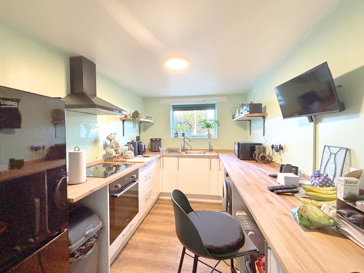 Located just moments from the heart of the bustling village of St Keverne, this well-presented one bedroom ground floor flat offers comfortable and convenient living in a sought-after setting. The spacious lounge/dining room provides plenty of room to relax or entertain, with ample space for both seating and dining areas. The modern fitted kitchen is light and bright, featuring contemporary units and a useful breakfast bar for casual day to day meals or an ideal workspace.