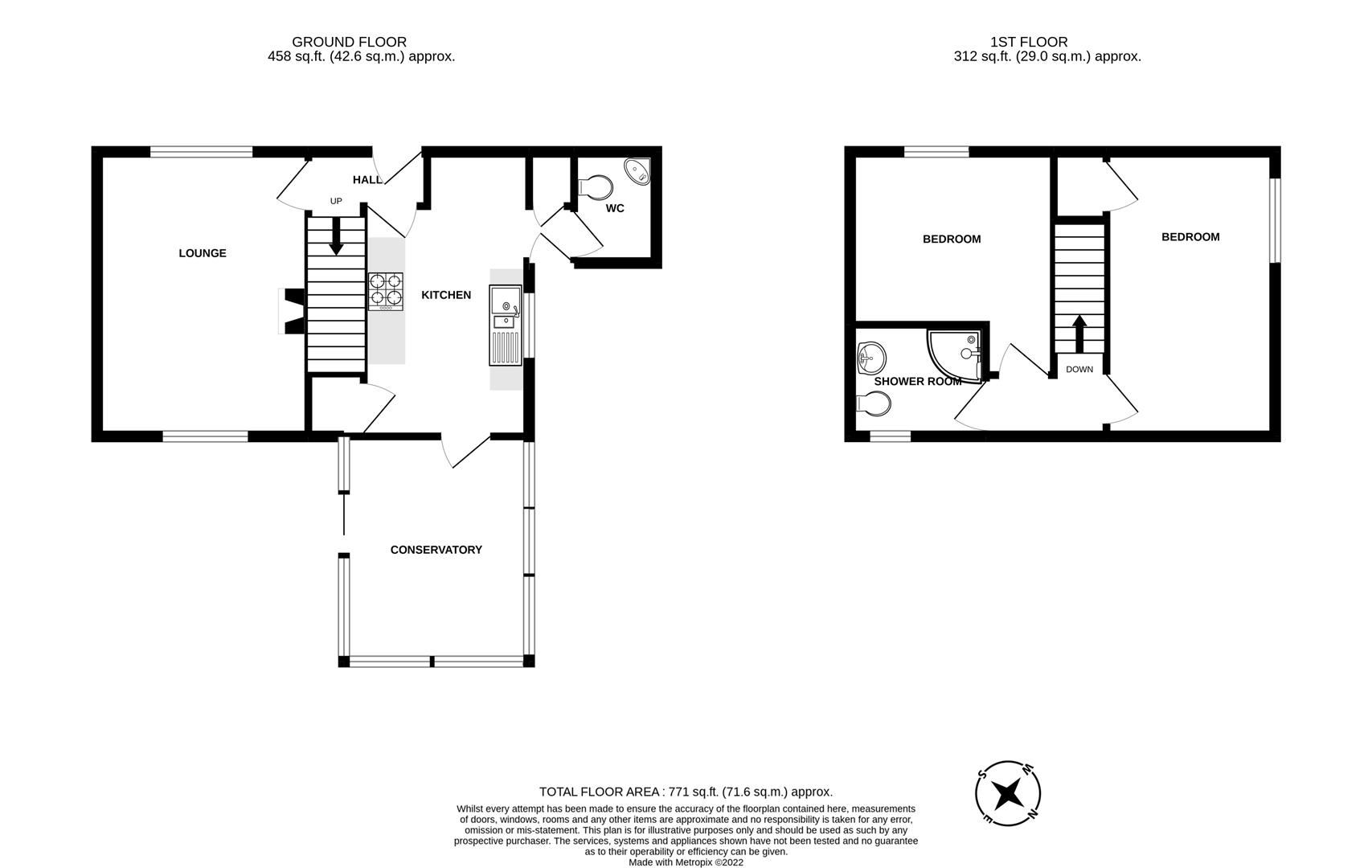 The accommodation briefly comprises, on the ground floor, an entrance hallway, lounge, and a nicely fitted kitchen leading through to a triple-aspect conservatory enjoying an outlook over the garden and adjoining countryside, together with a cloakroom. On the first floor there are two bedrooms and a well-appointed shower room.