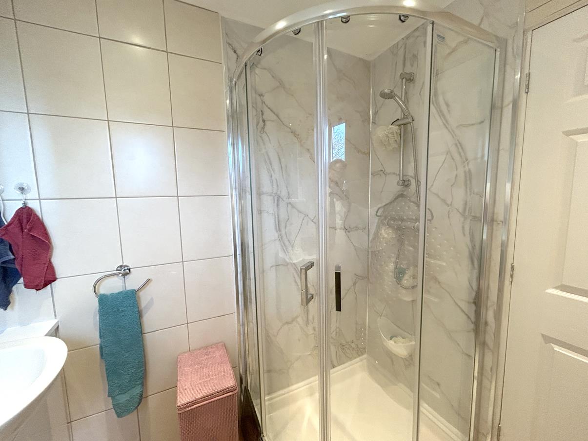 Shower Room - A nicely appointed room with glazed walk-in shower cubicle with tiled splash back, vanity unit with storage unit housing a sink unit and lit mirrored cabinet over, W.C. with concealed cistern, shaver socket, extractor, chrome towel radiator, window to the rear aspect and tile effect laminate flooring. The room is lit by a series of down lighters.