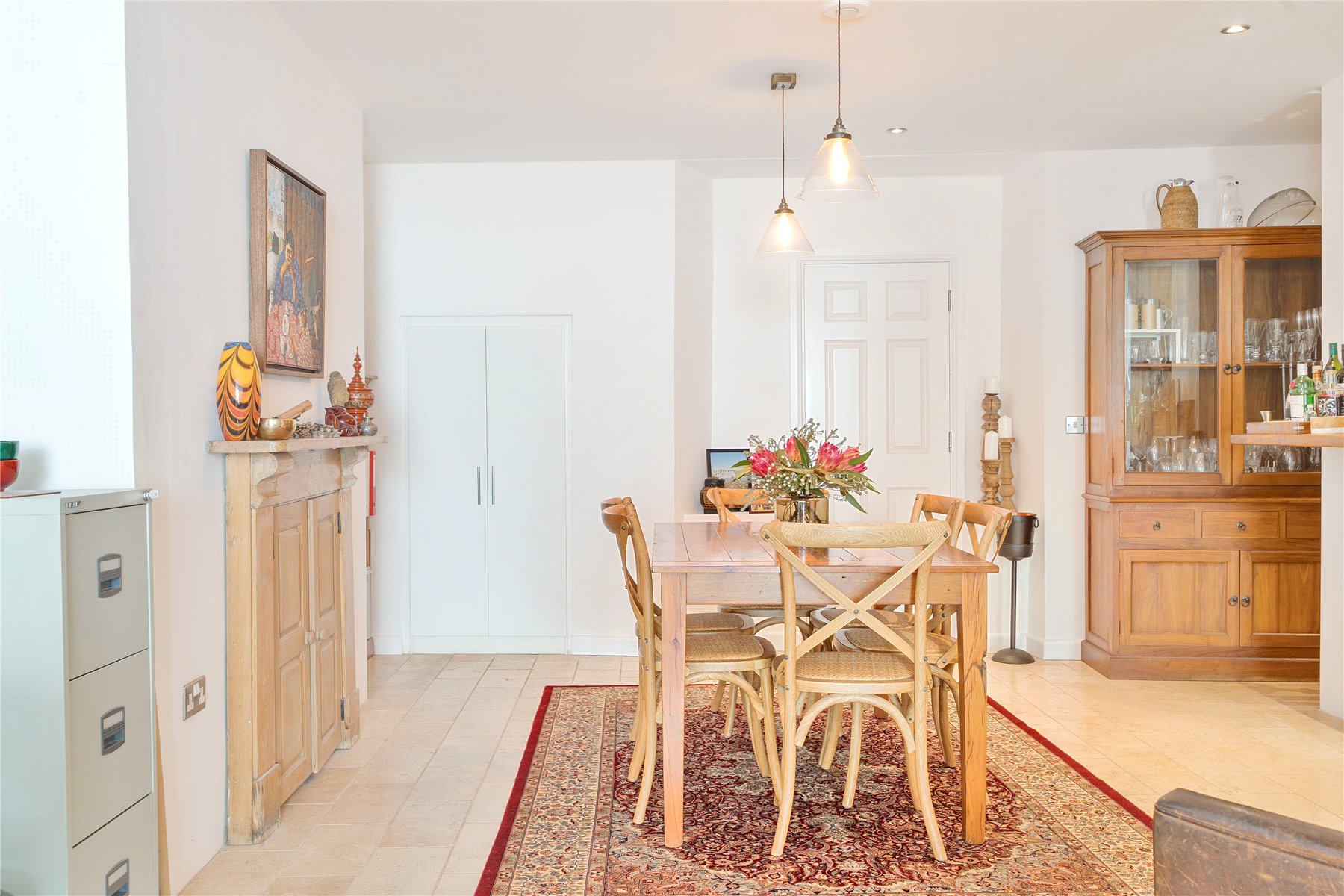Beautifully configured, the apartment features over 1200 sqft of open-plan living space, with underfloor heating and a gas-fired stove, creating a warm and welcoming atmosphere. The bespoke, hand-crafted kitchen flows effortlessly into a striking dining and entertaining space ideal for hosting, relaxing, or simply enjoying the garden outlook.