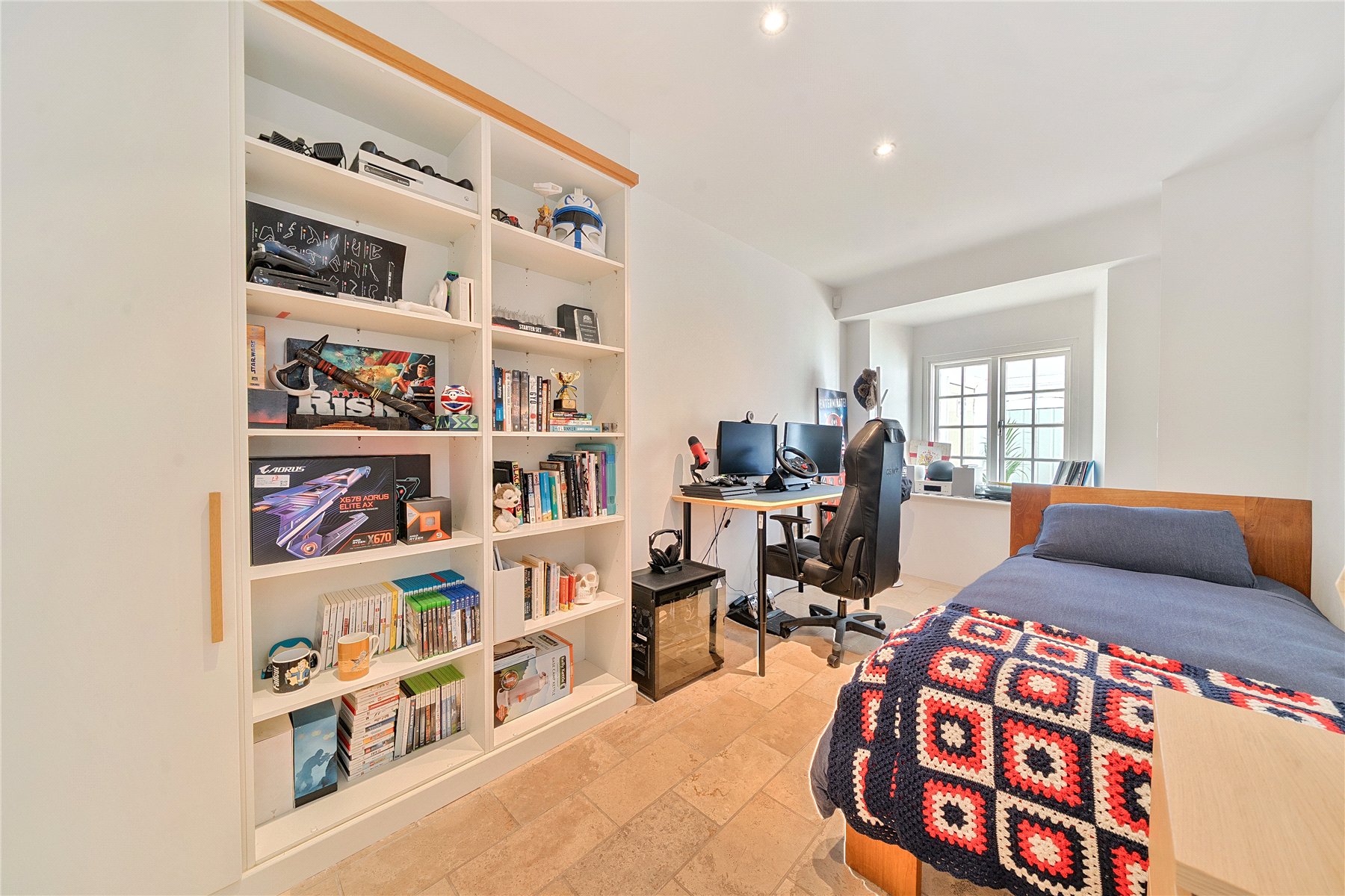 The apartment offers two spacious double bedrooms, including a superb principal suite with floor-to-ceiling fitted wardrobes, Velux window, additional storage, and a luxurious en-suite bathroom. A high-specification walk-in shower room complements the layout, while a cleverly concealed cellar adds to the appeal, offering useful additional space.