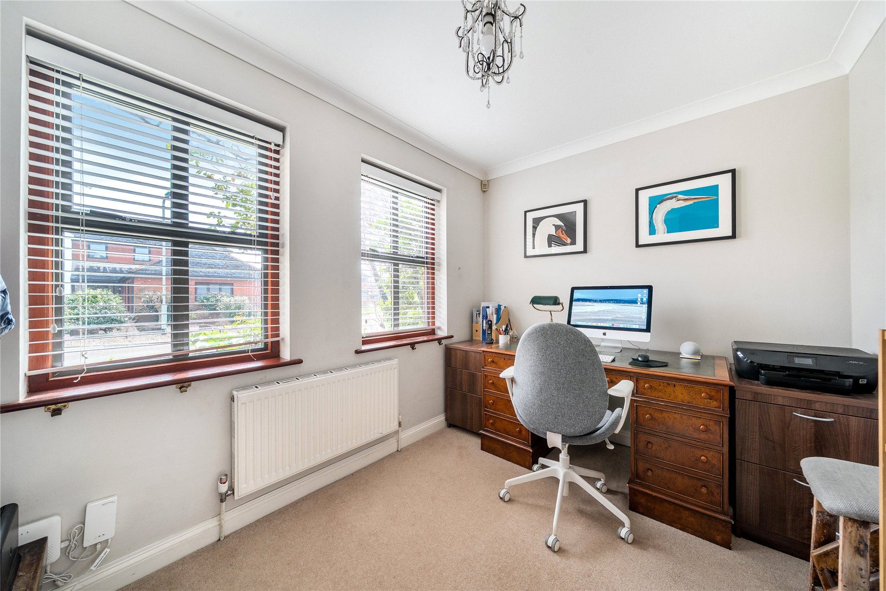 The study, positioned at the front of the house, is an ideal home office or quiet reading room, with two double glazed windows and a radiator.