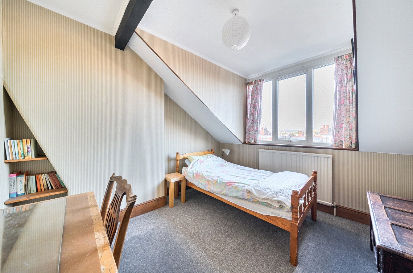 Upstairs, the first floor offers three comfortable bedrooms and a family bathroom, with two additional bedrooms on the top floor, one enjoying lovely views across the city towards Exeter Cathedral.