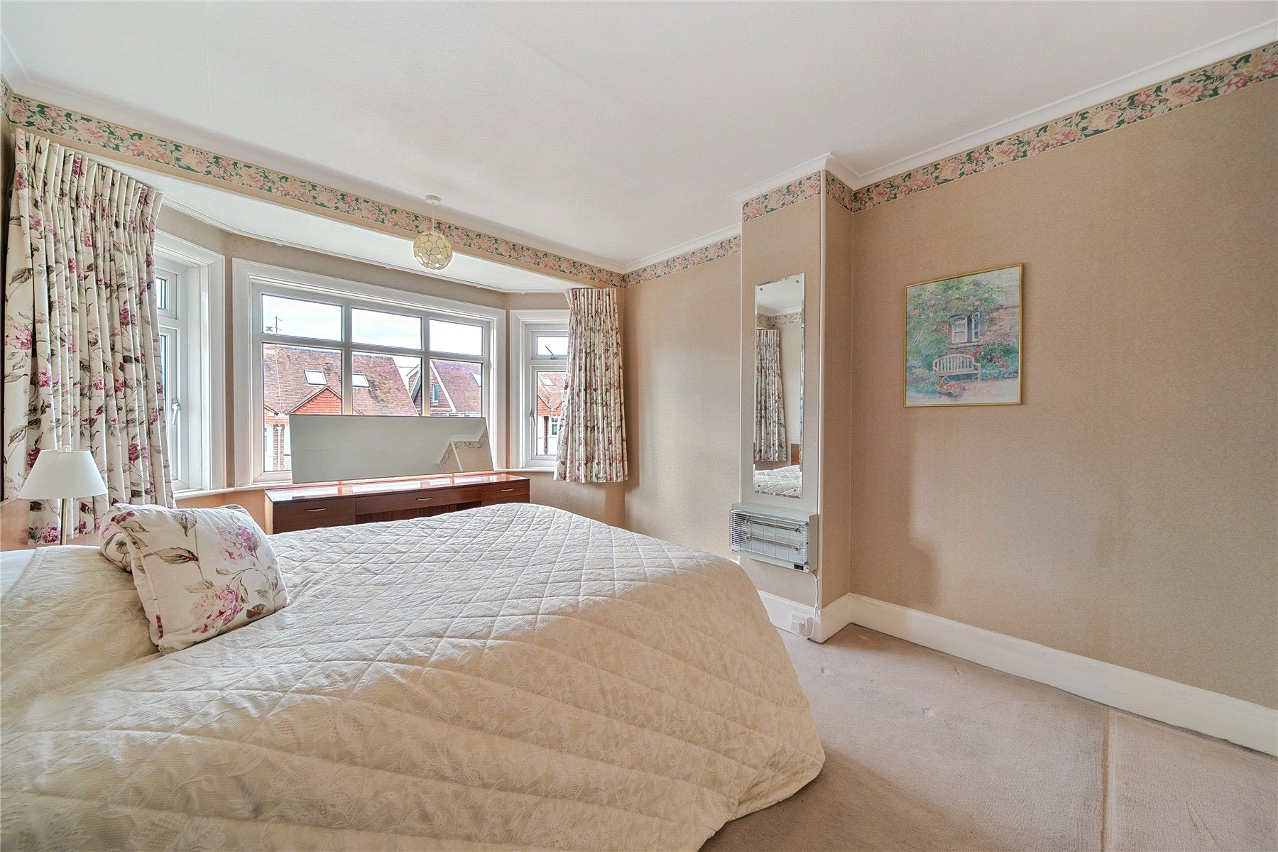 Upstairs, the first floor offers three well-proportioned bedrooms, including a spacious principal bedroom with a charming bay window that fills the room with natural light. The second bedroom enjoys delightful views over the rear garden, creating a peaceful and scenic backdrop and the third completes the first floor rooms which is a good sized single. This floor is completed by a family bathroom with a panel enclosed bath and wash hand basin with a separate cloakroom.