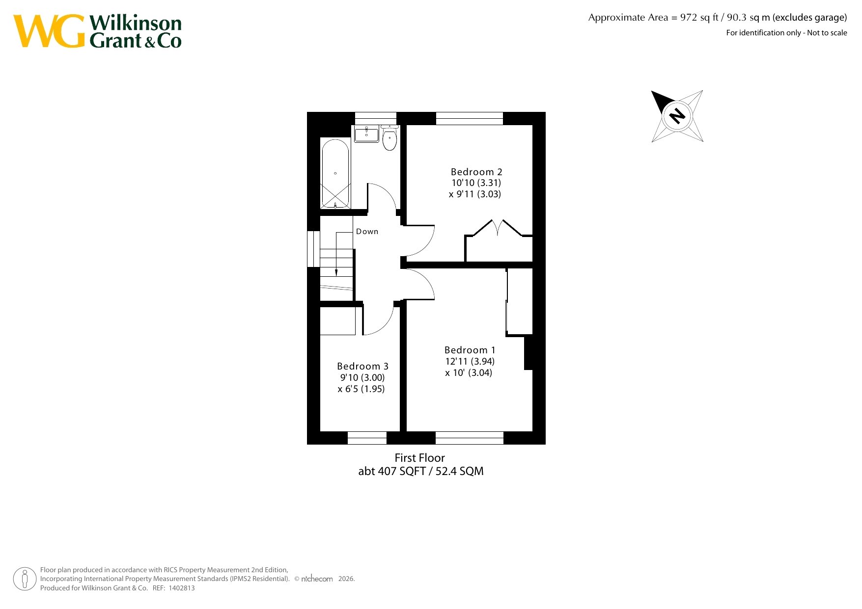 Upstairs, the property offers three well-proportioned bedrooms and a Bathroom fitted with a modern white suite.