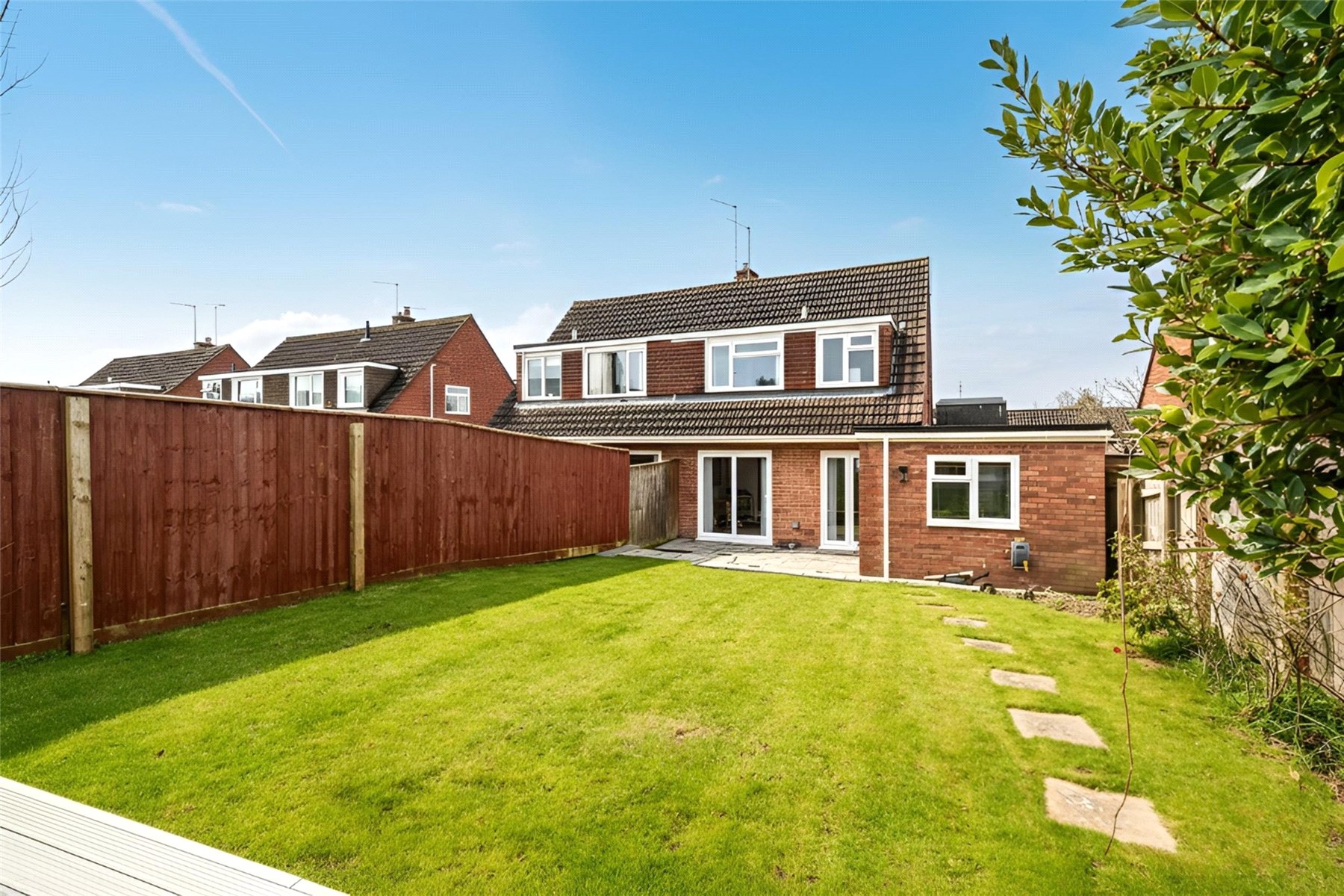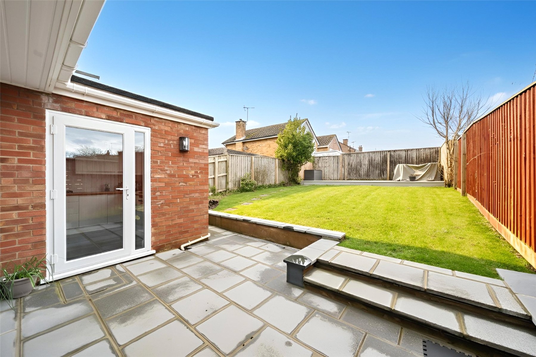 The rear garden is designed for both relaxation and entertaining, featuring a generous paved patio which opens onto a lawned garden, offering a safe and private outdoor space to enjoy.