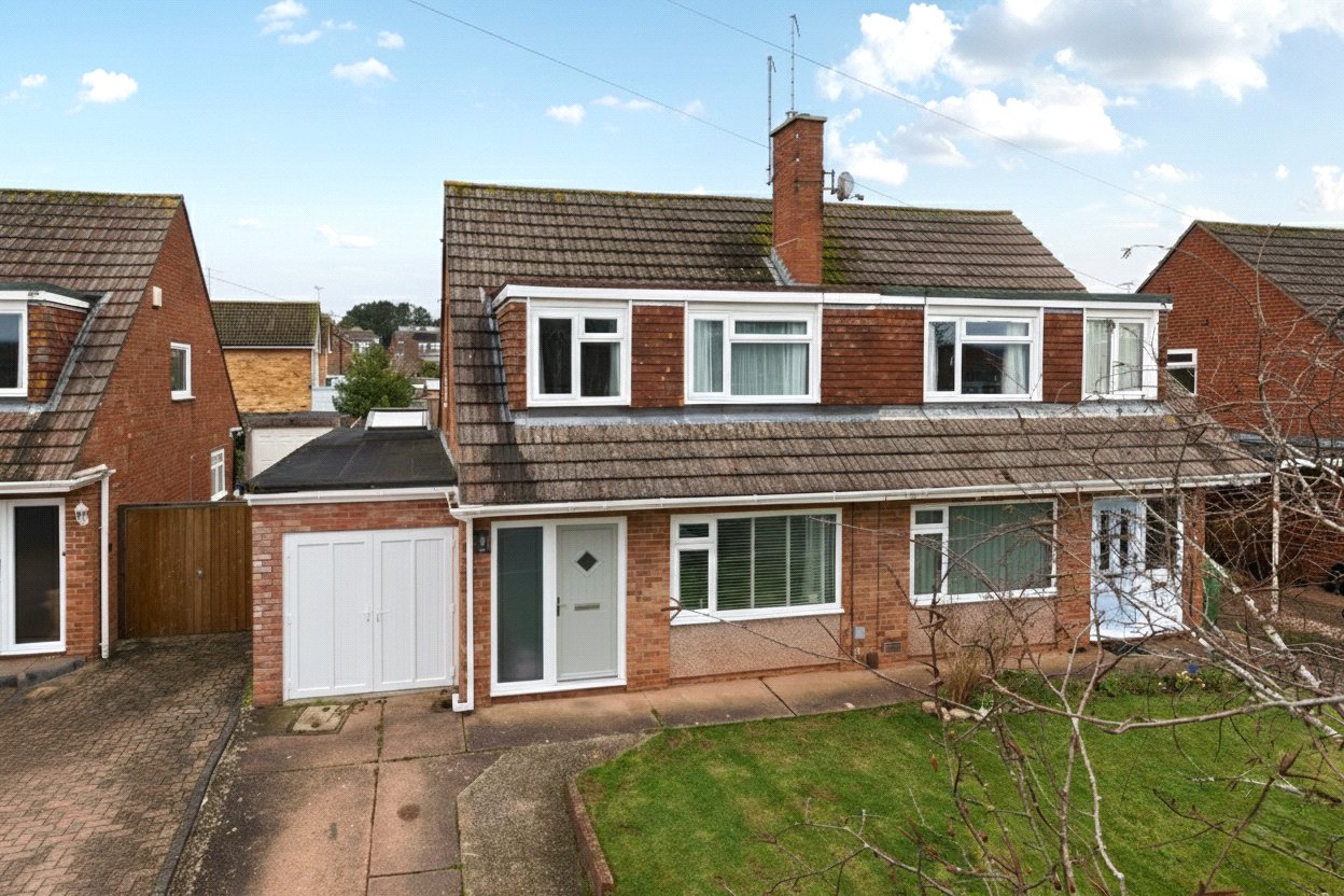 To the front, a neatly maintained lawned garden enhances the homes kerb appeal, alongside a private driveway providing off-road parking for two vehicles and access to the Garage.