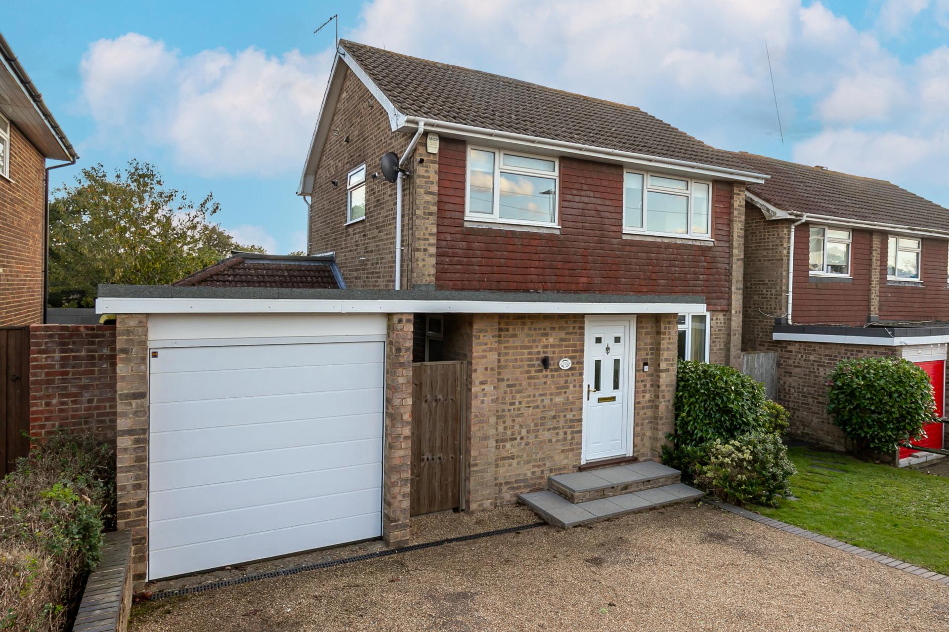 The interior features a contemporary design throughout, with high-quality finishes and ample natural light in all rooms. The open-plan kitchen/diner is great for spending family time together or hosting guests as the double doors lead directly out onto the garden. The three generously sized bedrooms upstairs provide plenty of space for relaxation, privacy and storage, with the primary bedroom having built in cupboards and boasting fabulous views of the surrounding area and out over towards Eastbourne.