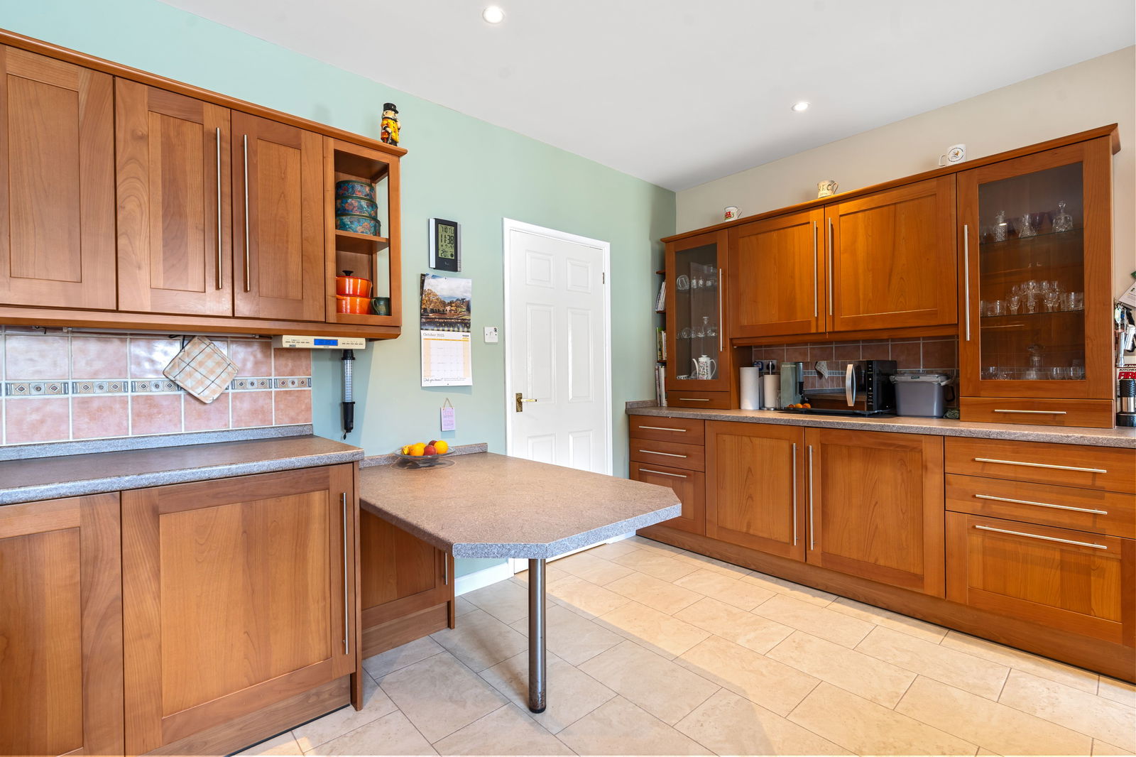 Generous fully equipped kitchen with UVPC double glazed window to rear. Sink with stainless steel tap over. Integrated dishwasher. Integrated Diplomat oven and grill with gas hob. Extractor. Integrated fridge. Plenty of storage. Breakfast Bar.