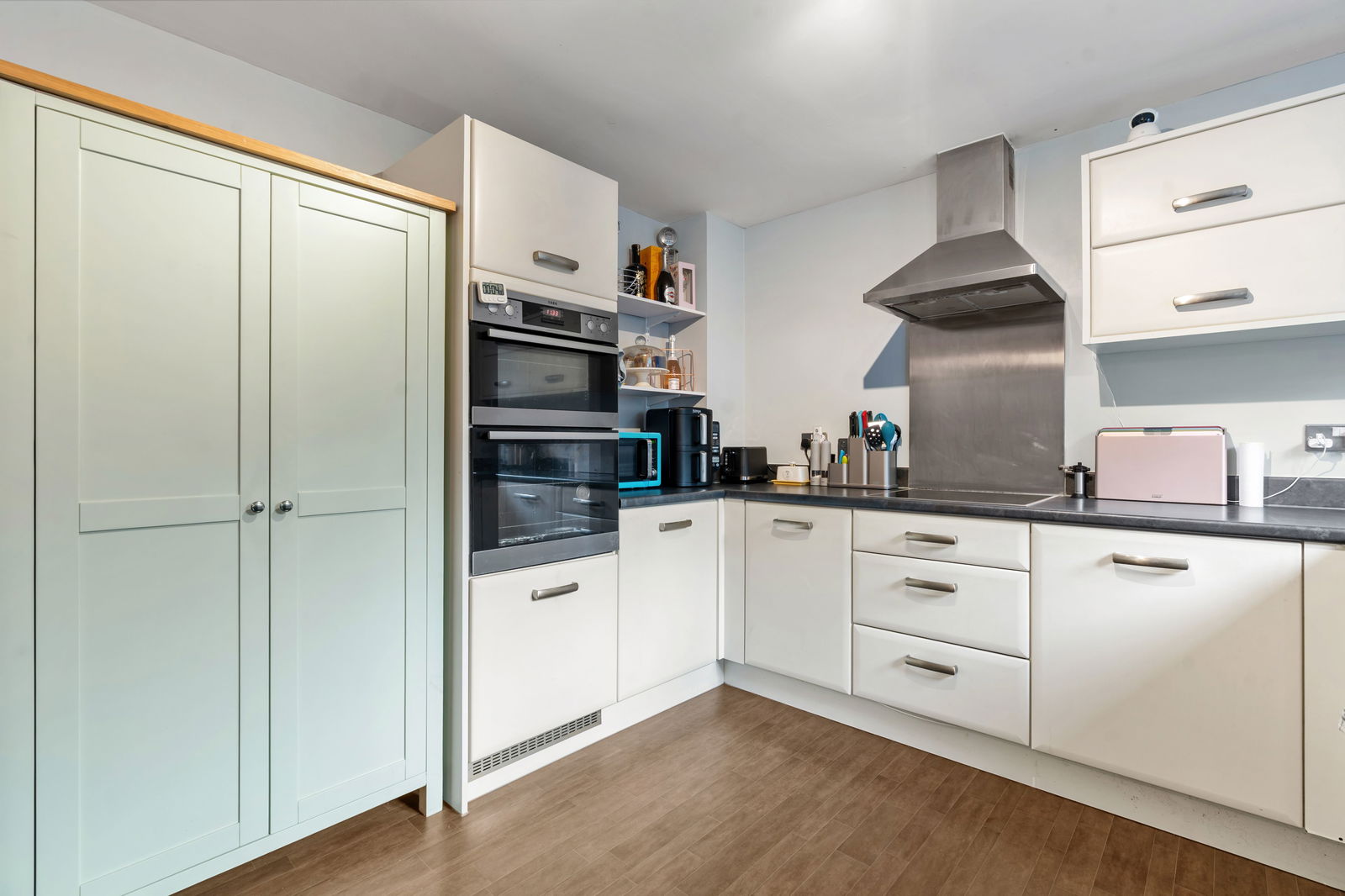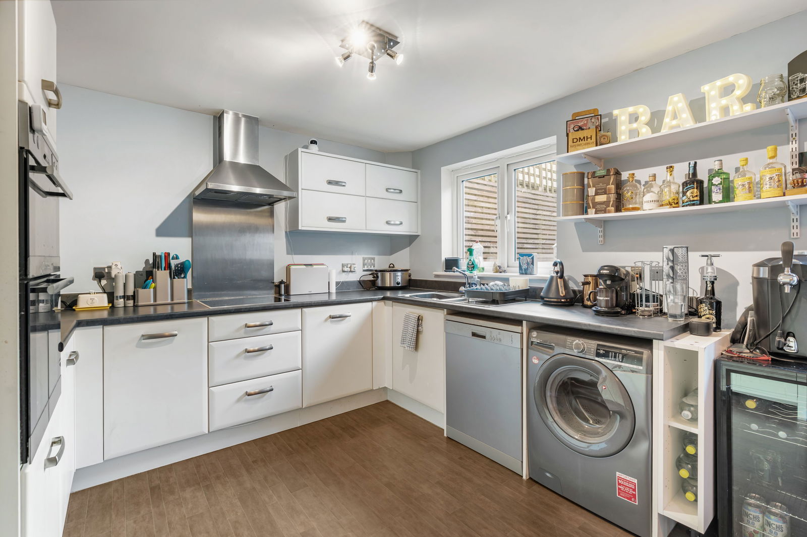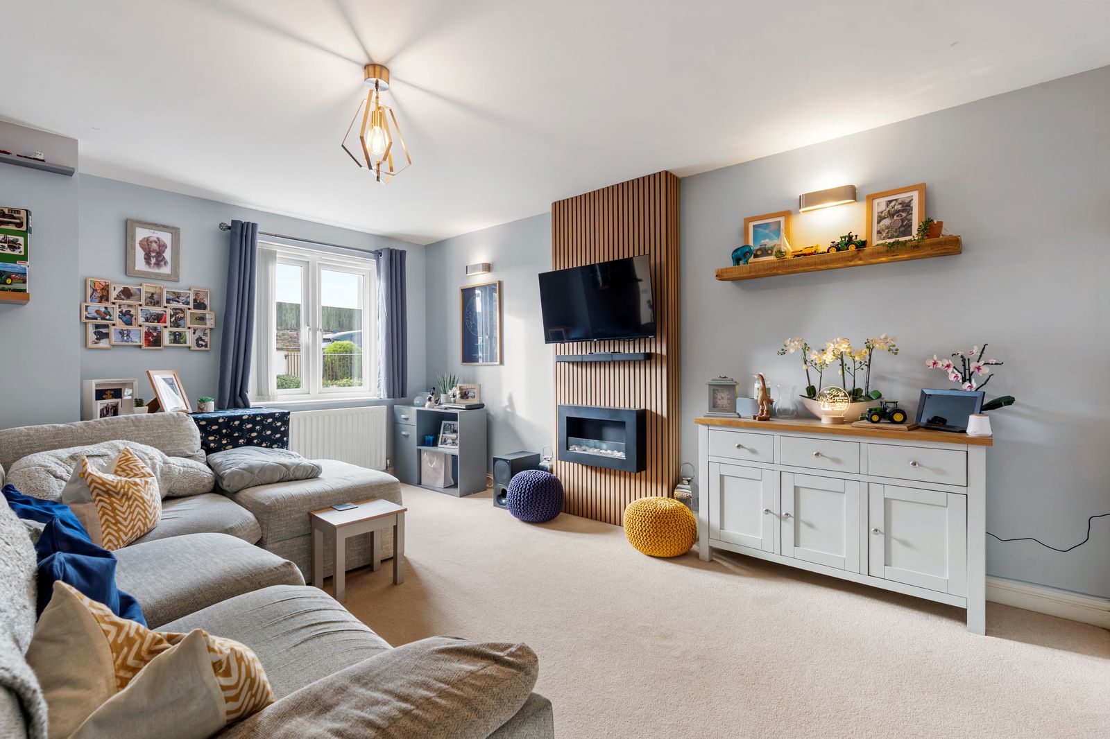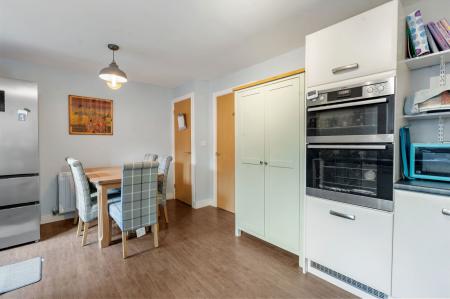 A modern fitted kitchen/dining room with a good range of wall and base cupboards with drawers and worktops over. Double AEG oven and grill. 4 ring AEG induction hob with extractor fan over. One and a half bowl stainless steel sink with mixer tap over. Space and plumbing for dishwasher. Space and plumbing for washing machine. Space and power for fridge freezer. Understairs storage cupboard. Built in shelving providing great additional storage. Radiator. UPVC double glazed window to rear. UPVC double glazed patio doors to rear.