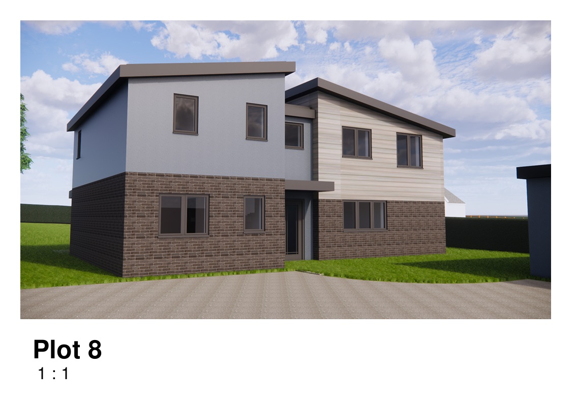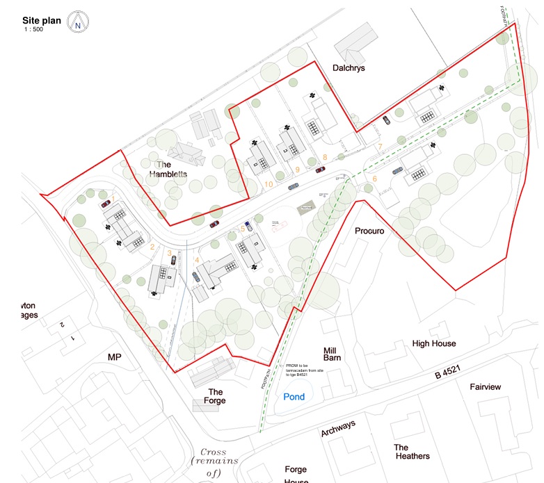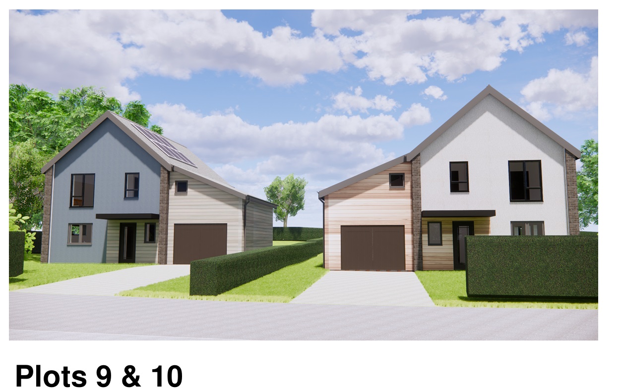 Eight of the ten properties would have garaging, and all would have air-source heating, solar PV panels, and access to a mains water and electricity supply.