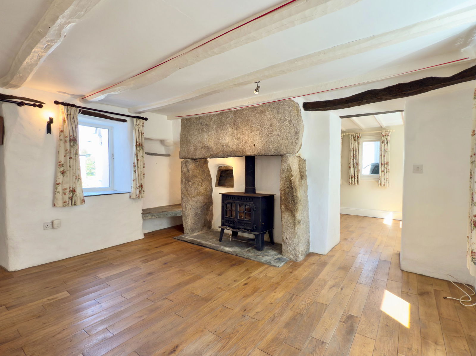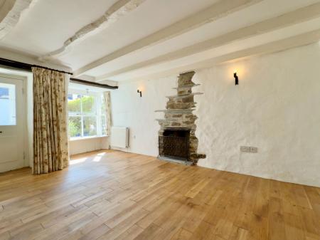 Bay window to front and window to rear overlooking the garden. Magnificent feature fireplace housing woodburner with granite lintel and surround together with cloam oven. 3 radiators. Beamed ceiling. Further fireplace with stone built surround (not in use). Telephone point. Doorway to