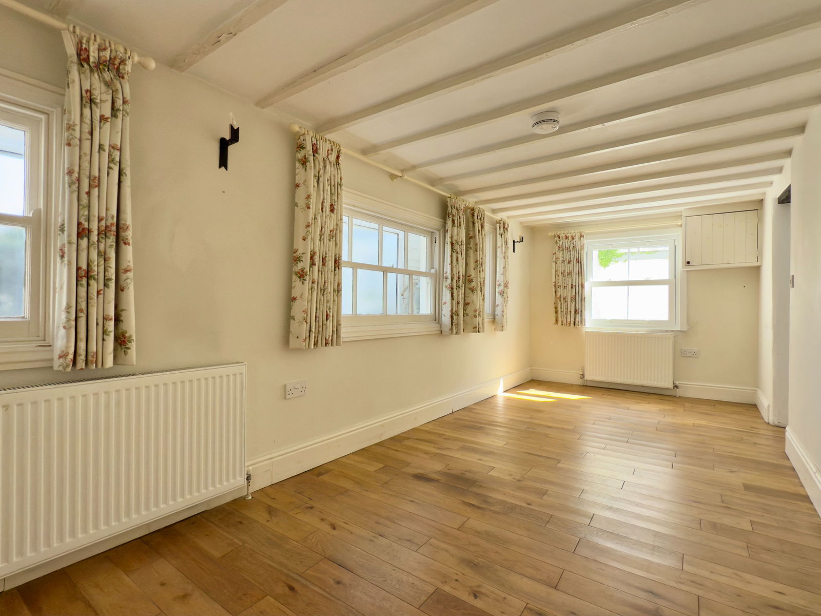 A light dual aspect room with UPVC double glazed sash window to front and 3 windows to side through the side porch. Beamed ceiling. 2 radiators.