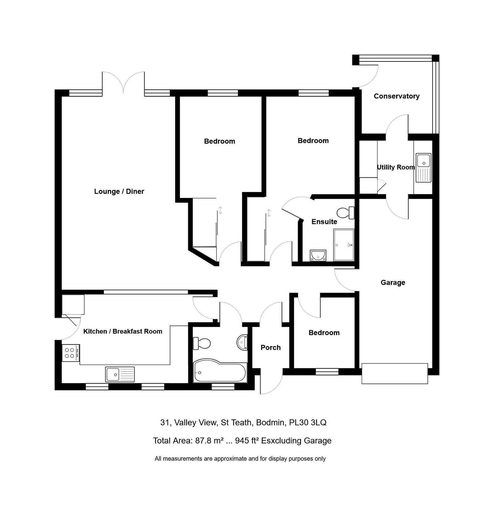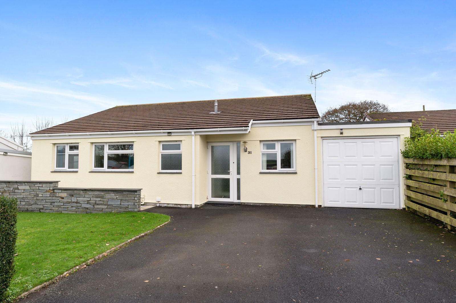 31 Valley View is coming to the market offering an exciting opportunity to purchase this newly decorated spacious 3 bedroom detached bungalow located within the popular village of St Teath. As you enter the property you are greeted with a front porch which leads into a generous entrance hall which easily flows into a spacious living room/dining room allowing easy level access out to the rear patio and garden via the sliding doors. The bungalow also benefits from a good size immaculately presented kitchen with space for a dining table, with a door leading out to the side of the property. There are 2 double bedrooms, one with en suite, both benefitting from generous built-in storage cupboards as well as a single bedroom to the front. The property benefits from an integral single garage with power connected, which then leads through to a utility room and on to a generous garden room.