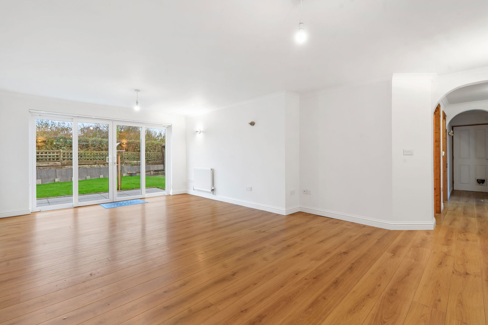 Generous size room with 3 radiators, 2 T.V. points, UPVC double glazed sliding doors to patio, large storage opportunities.