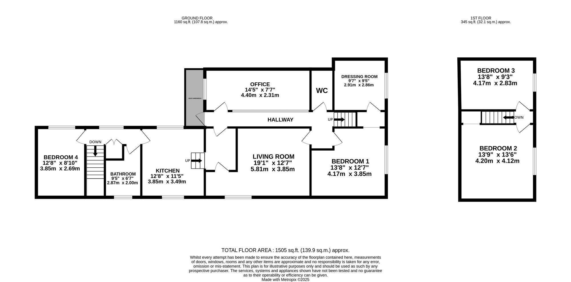 - A decked, roof garden allows for outdoor enjoyment and the perfect morning coffee spot.