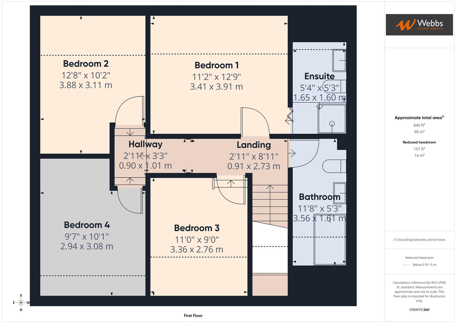 Ensuite - 1.63m x 1.60m (5'4 x 5'3) -