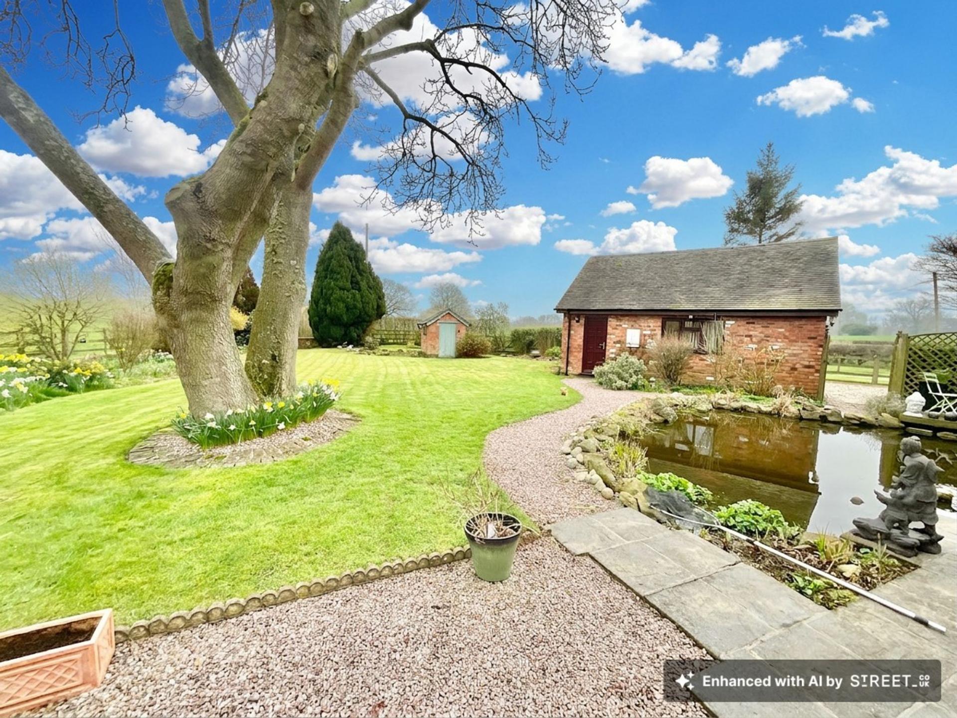 - Generous plot with mature gardens, pond, pergola seating area and secure gated driveway providing ample parking.