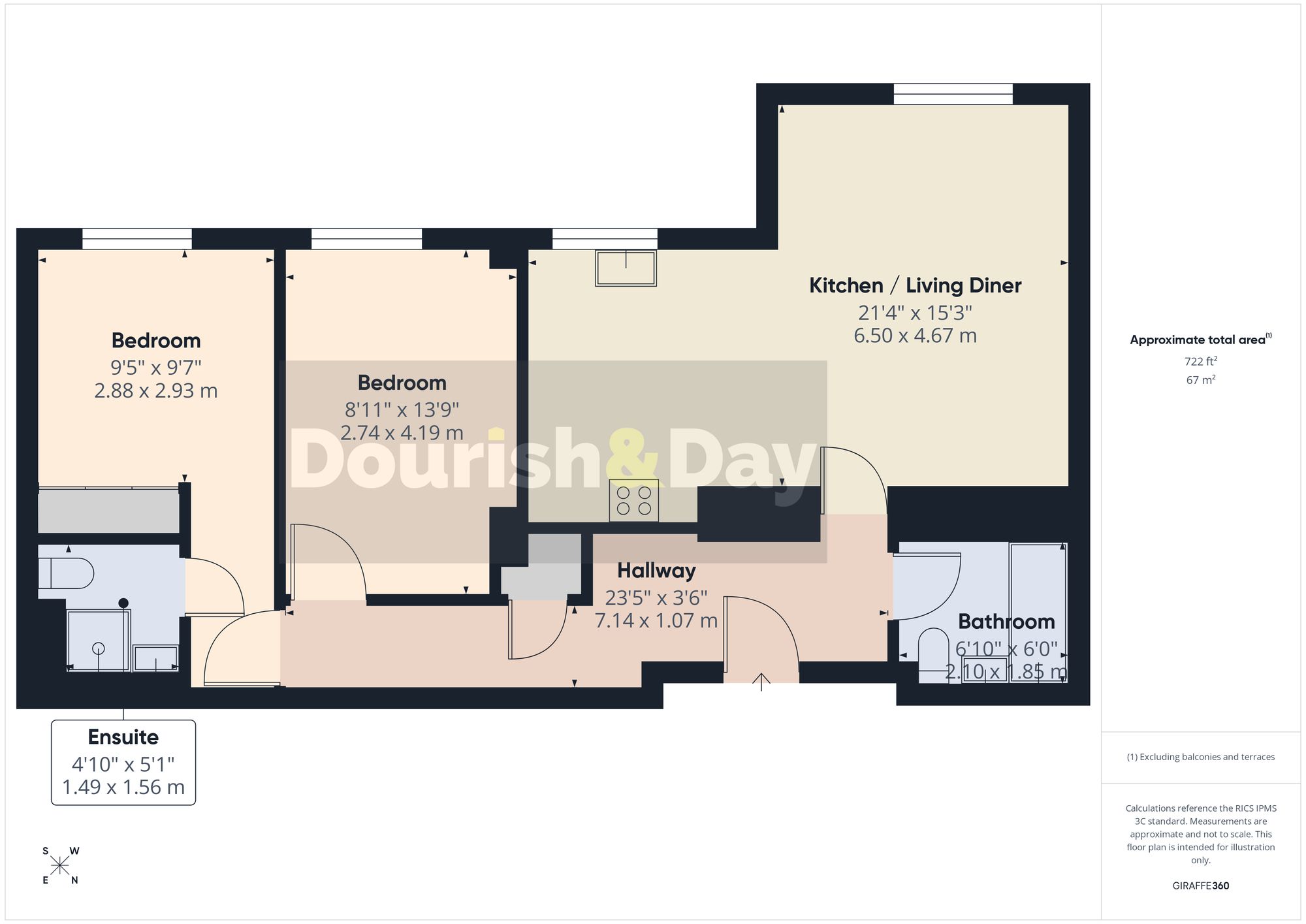 The south-facing property welcomes you through an entrance hallway with useful storage, leading to two generous double bedrooms. The main bedroom enjoys the added benefit of a modern ensuite shower room, while a separate contemporary family bathroom serves the rest of the home.