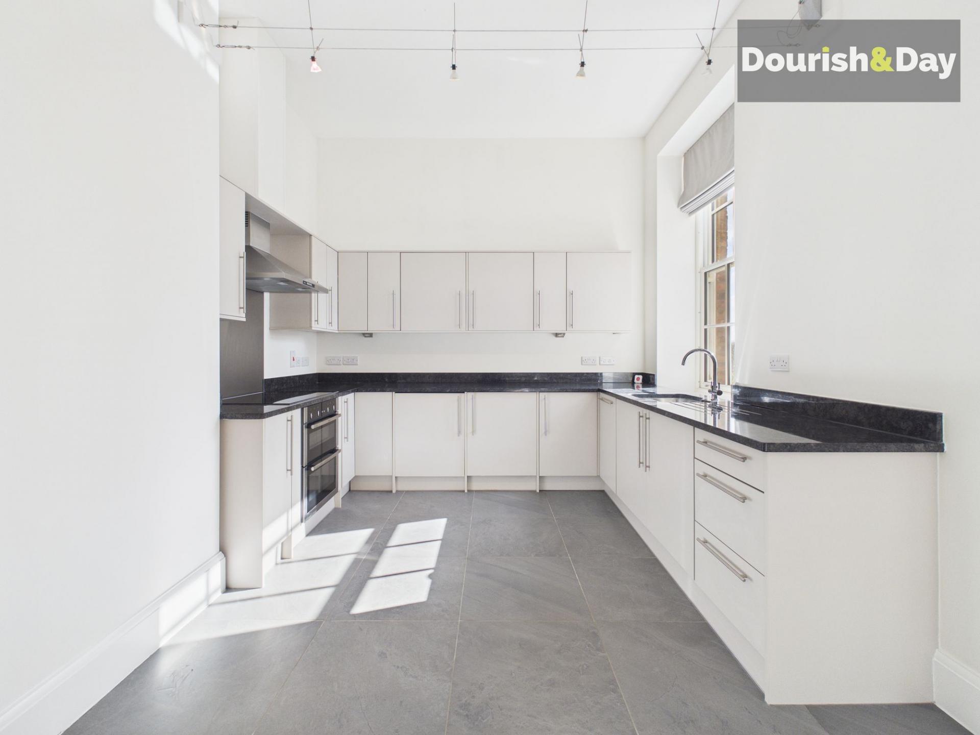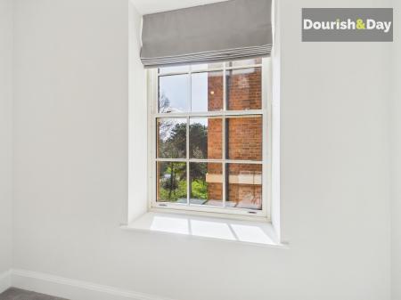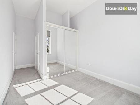 The real highlight of the apartment is the stunning open-plan kitchen, living and dining area, designed with modern living in mind. The sleek kitchen features integrated NEFF appliances, including a fridge freezer, wash and dry machine, oven and induction hob with cooker hood above. Beautiful sash windows flood the room with natural light, creating a bright and inviting space perfect for both relaxing and entertaining.