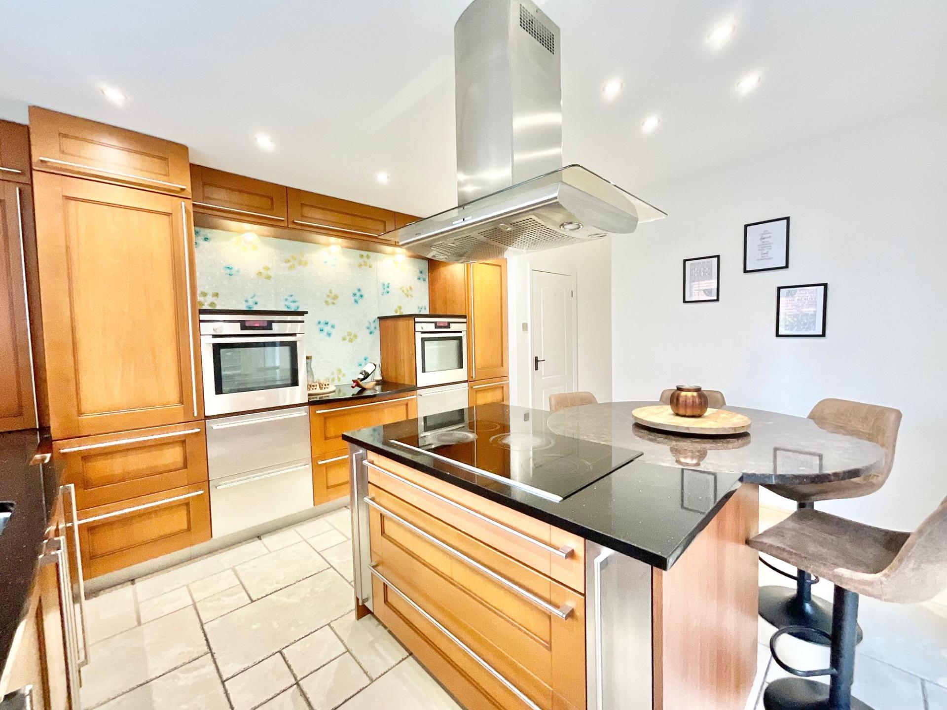 - Five generously sized bedrooms including a master with fitted wardrobes and luxury en-suite with Sun Shower and underfloor heating, plus an additional en-suite shower room and family bathroom.