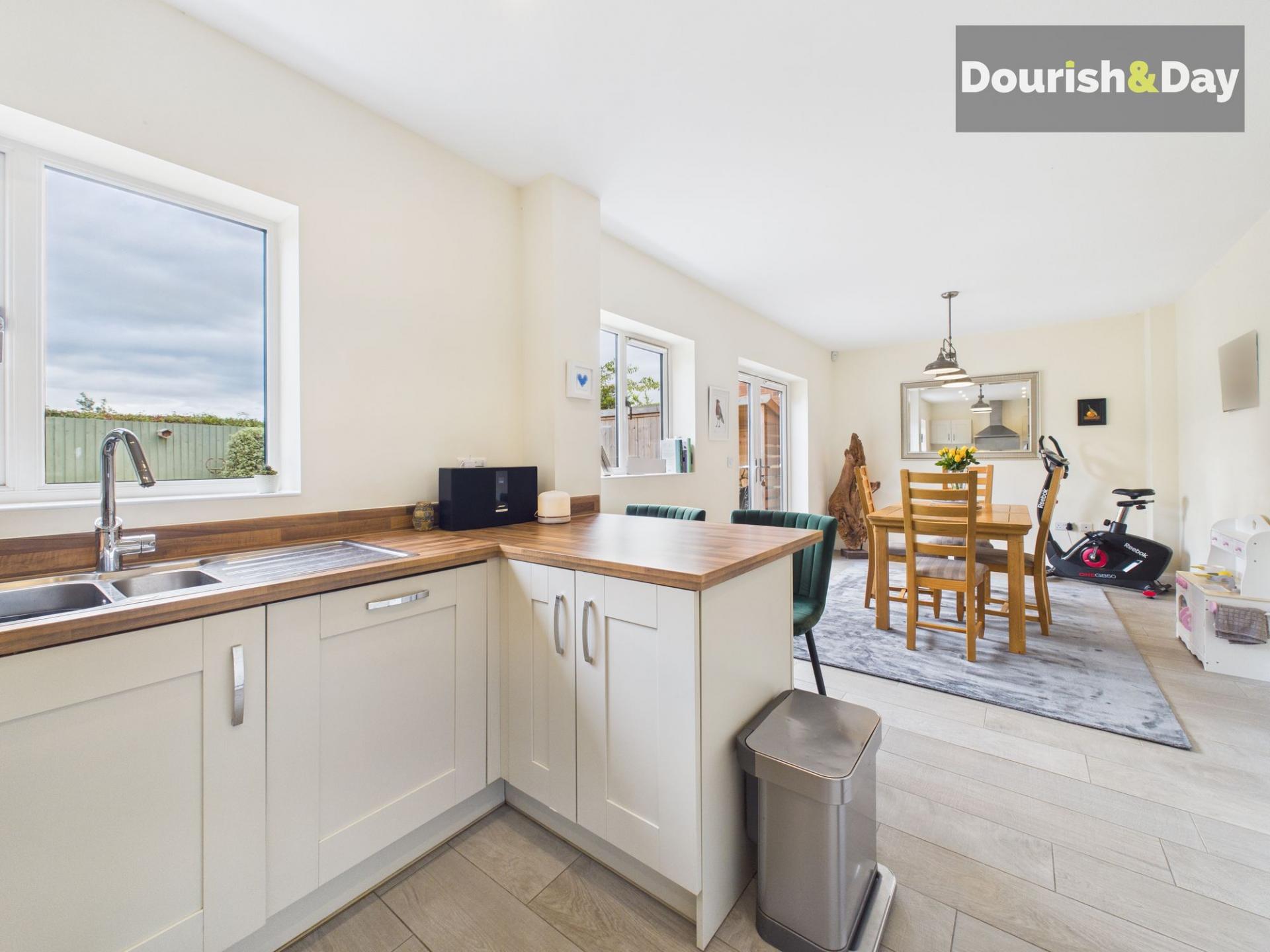 The property opens with an inviting entrance hallway and useful guest WC, leading through to a well-presented living room. To the rear, a stylish kitchen diner provides the ideal space for both everyday living and entertaining, with doors opening onto the garden. Upstairs, there are four bedrooms, including a main bedroom with ensuite shower room. The Jack and Jill family bathroom can be accessed from both bedroom two and bedroom four and a separate family bathroom adds to the home’s thoughtful design.